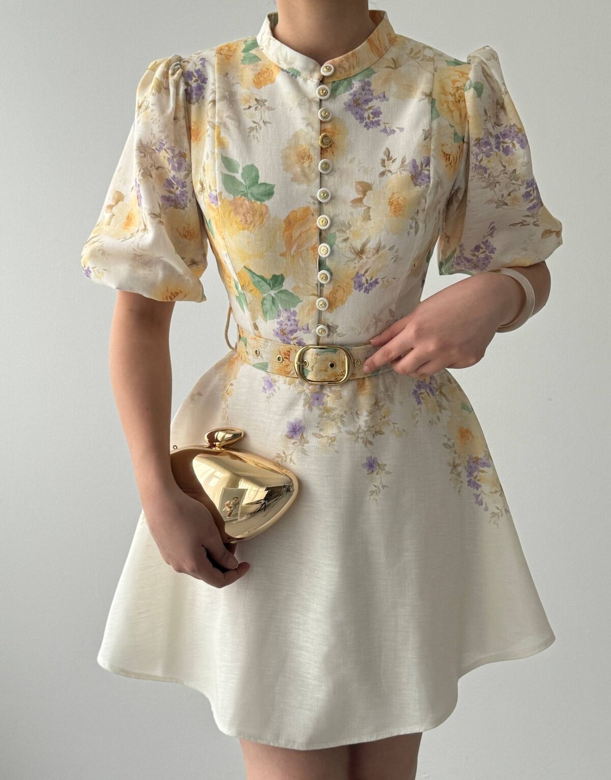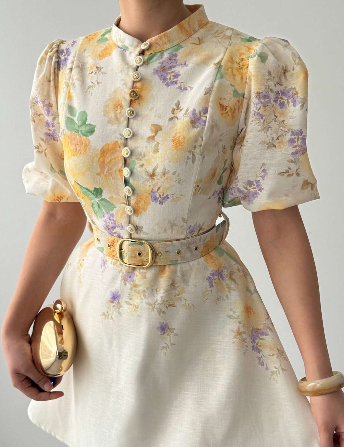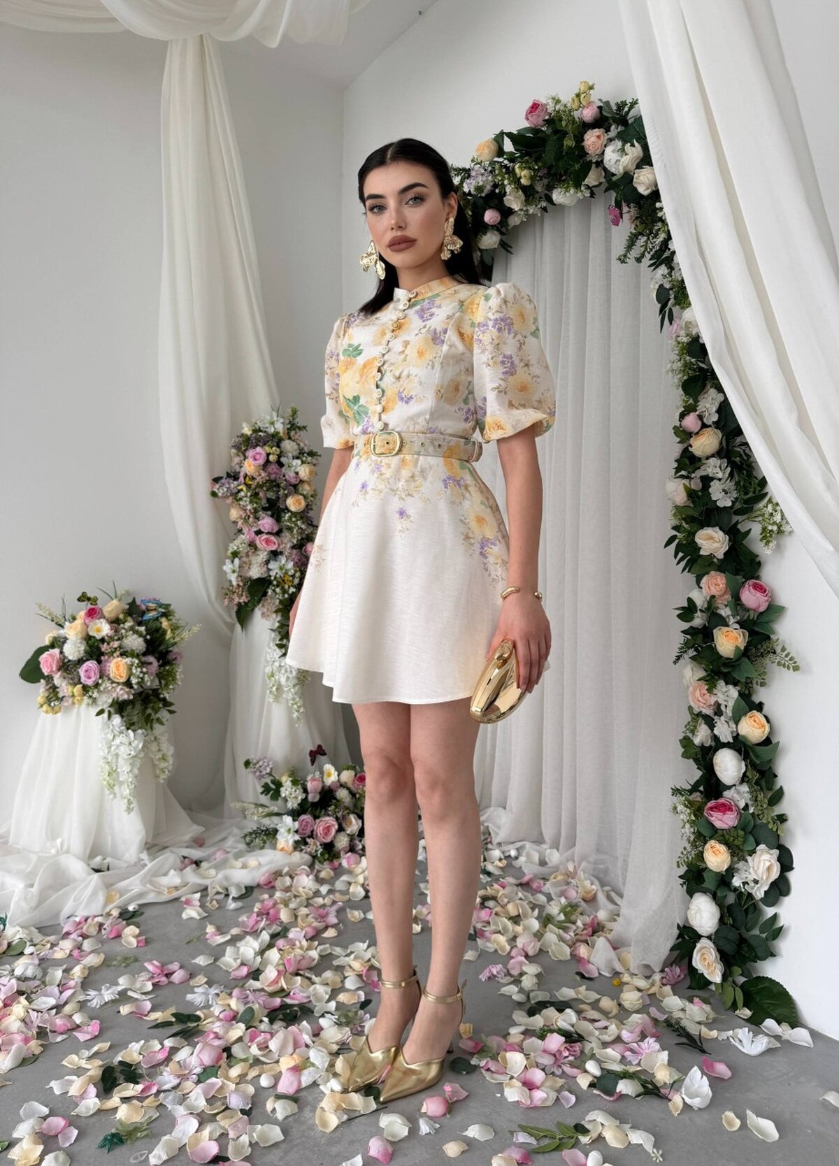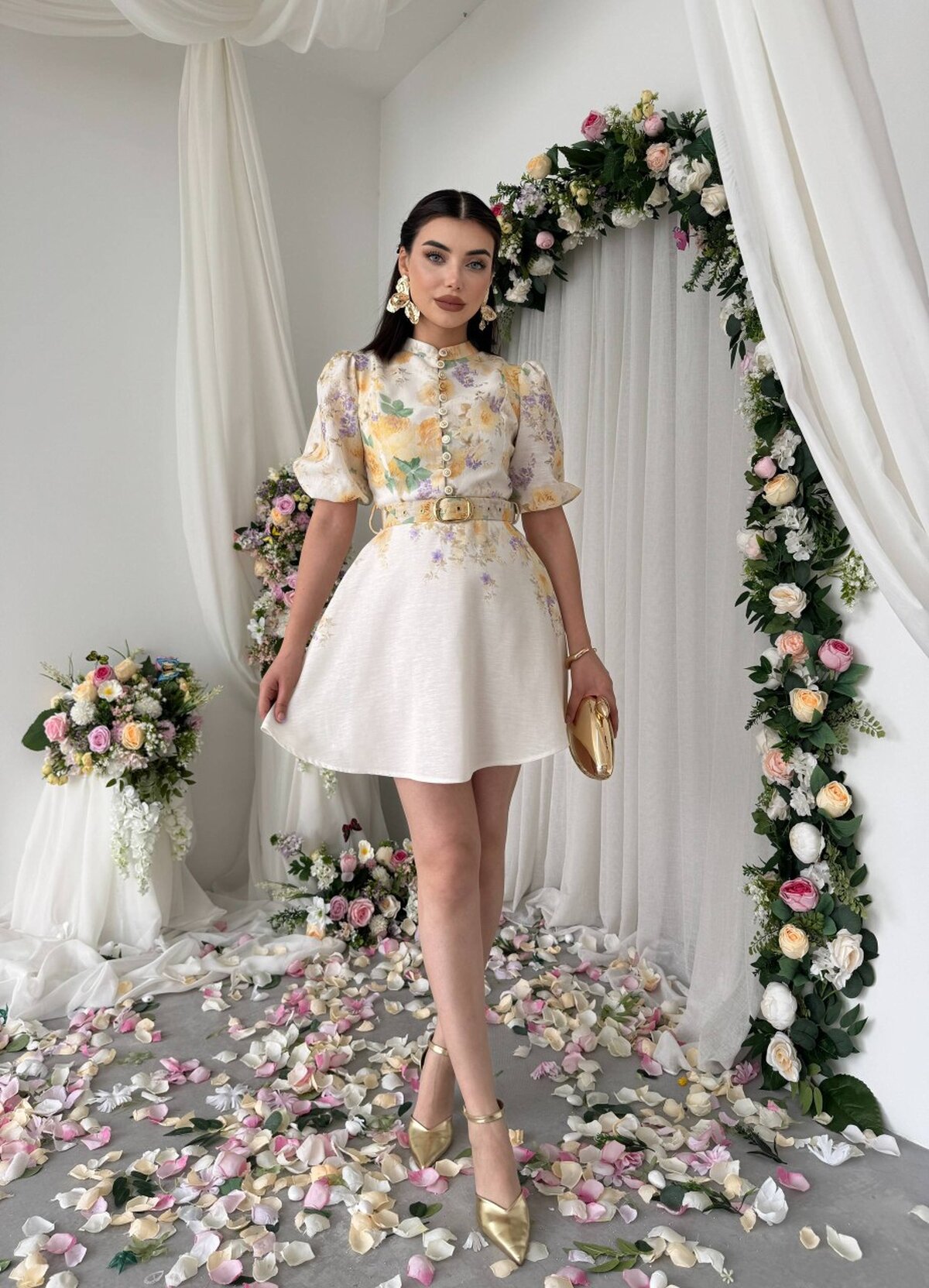 Etika Pana Kemer Detaylı Elbise ETK-00649-cicek-d-sari