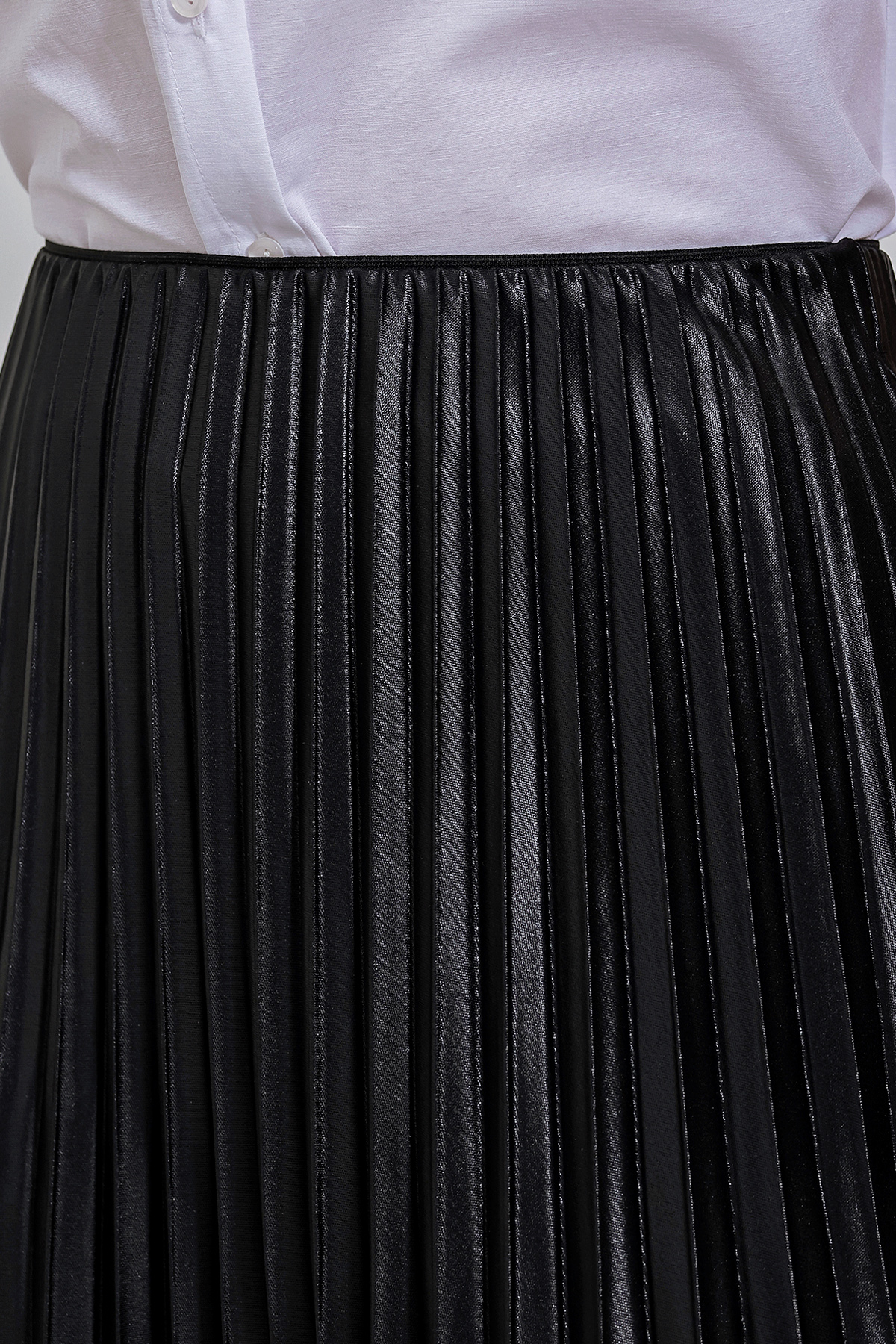 Deri Görünümlü Piliseli Etek