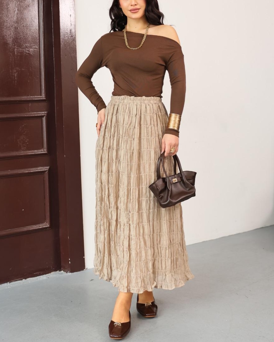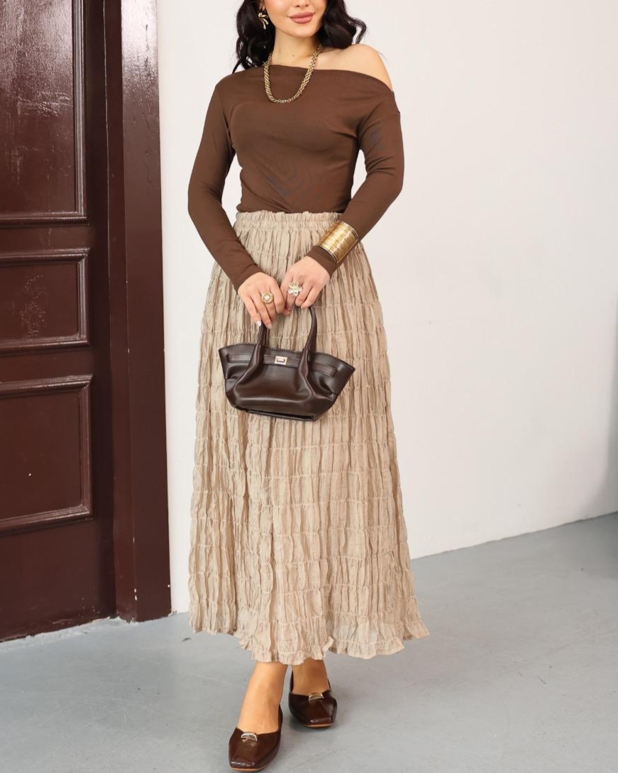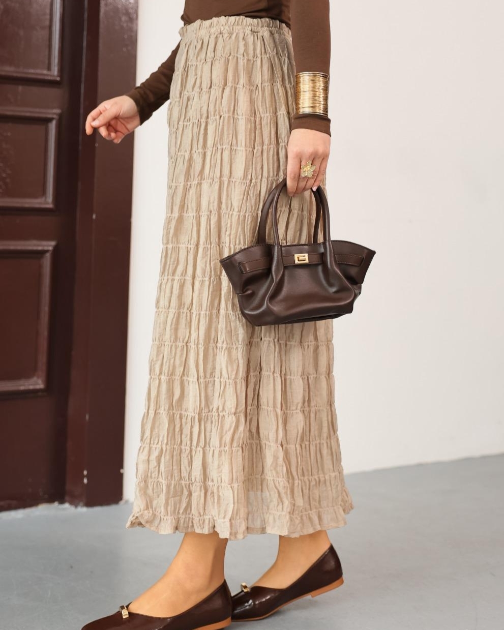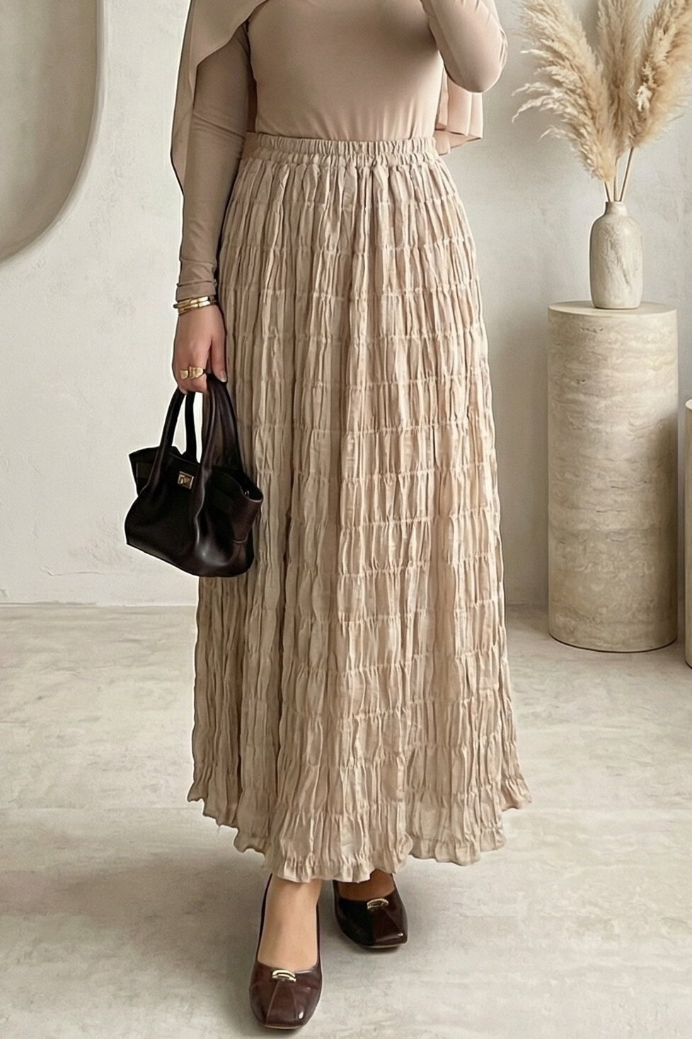 Podyumplus Astarlı Gipeli Modal Etek -Bej