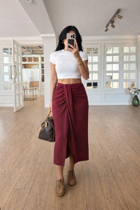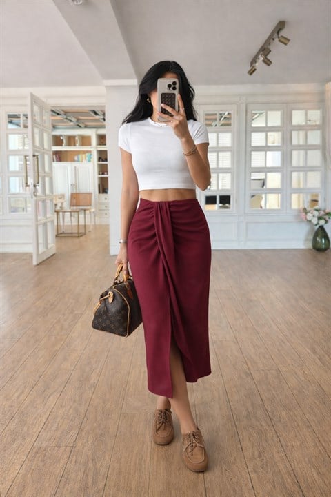 Kendinden Kemerli Önü Yırtmaçlı Gabardin Etek 4092