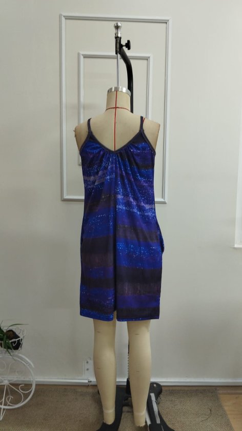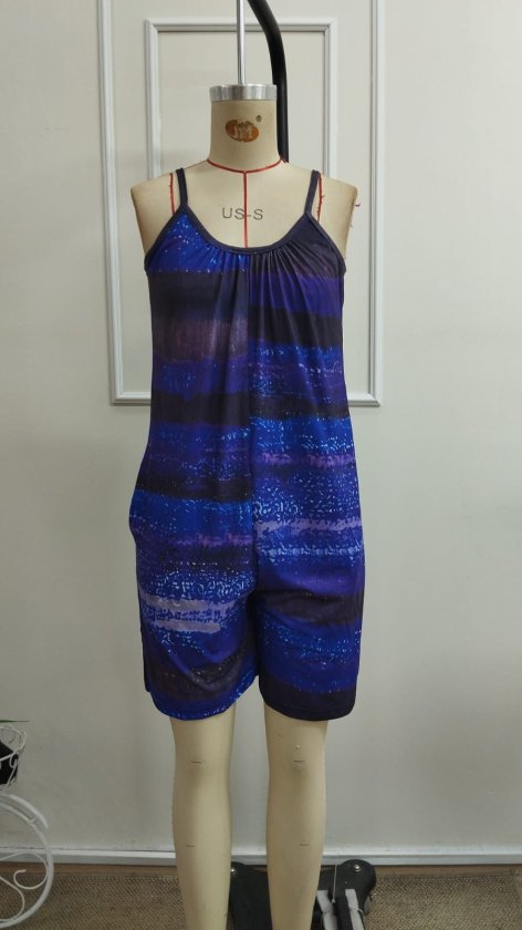 Kadın Ip Askılı Yuvarlak Yakalı Cepli Desenli Kısa Süprem Tulum