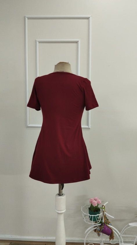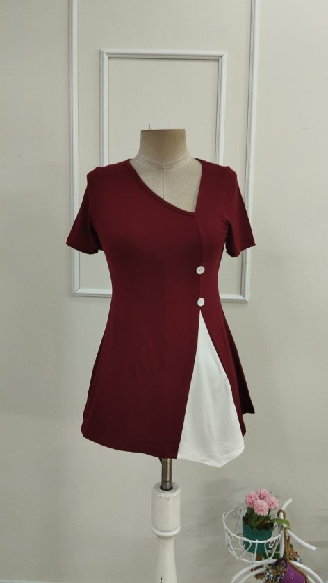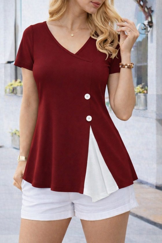 Kadın Kısa Kollu Asimetrik V Yakalı Düğme Detaylı Viskon Bluz , 33345