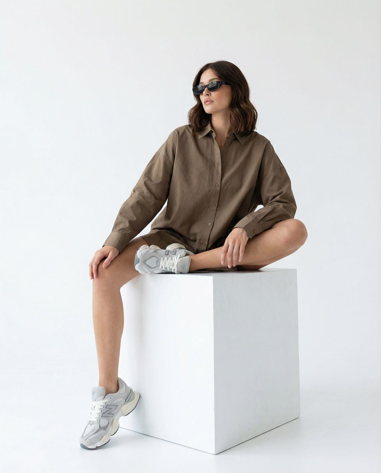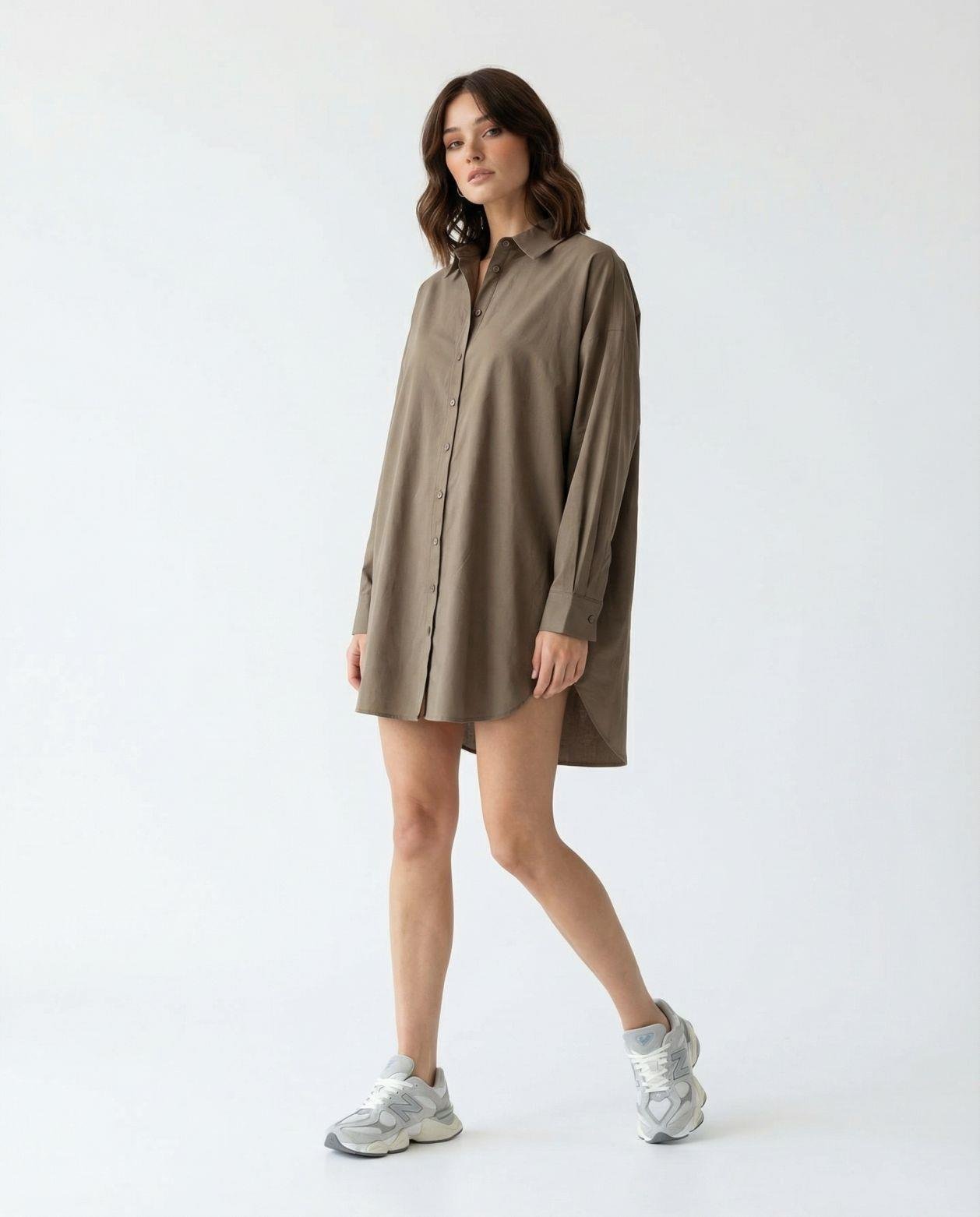 Uzun Kollu Toptan Gömlek - Kahve | F2101 - Topshow