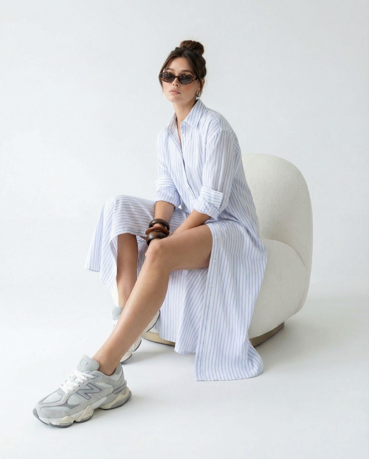 Çizgili Oversize Basic Gömlek 3504