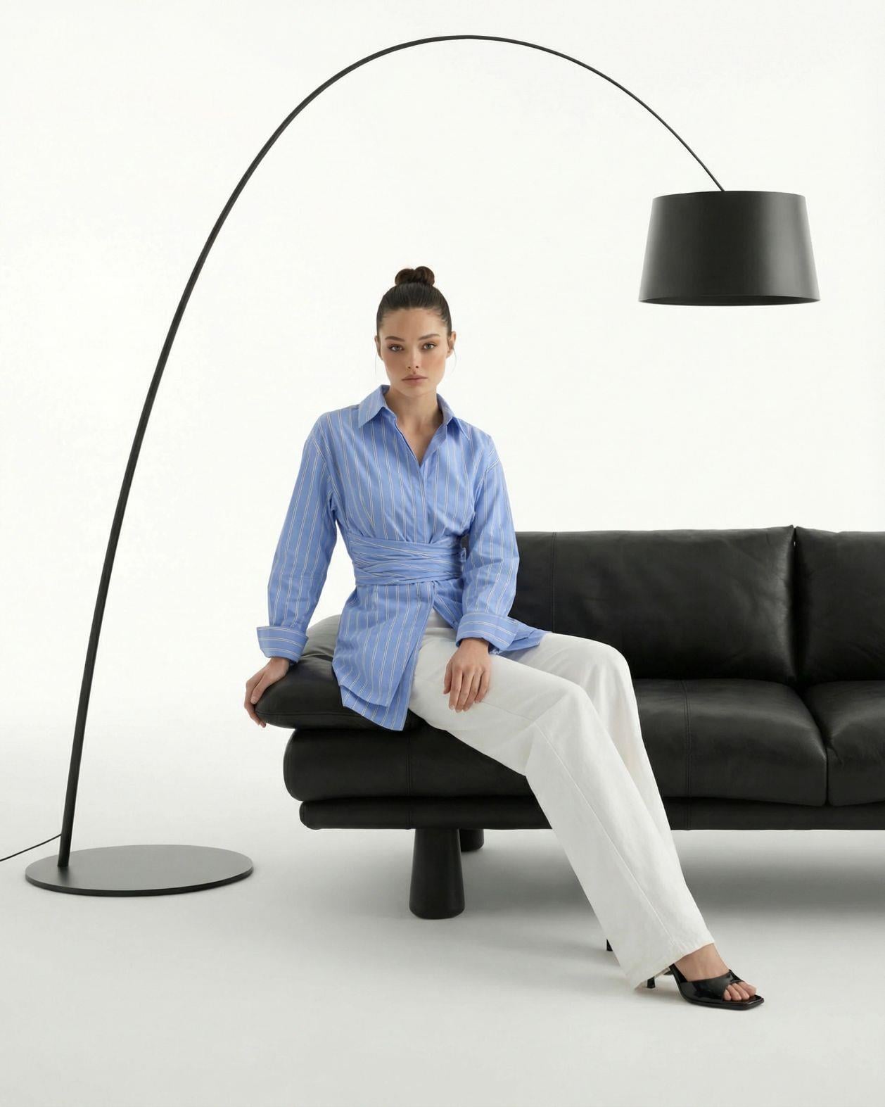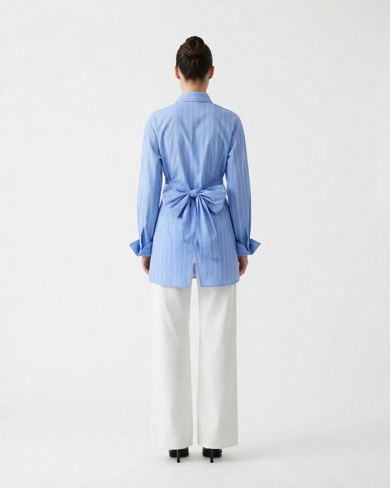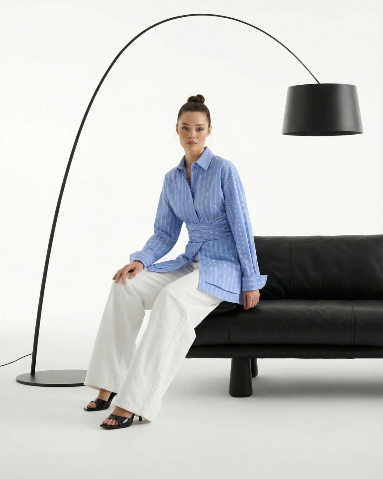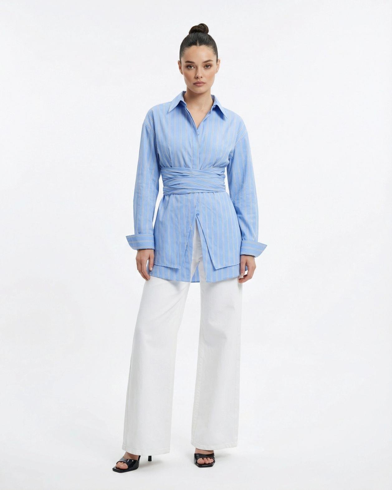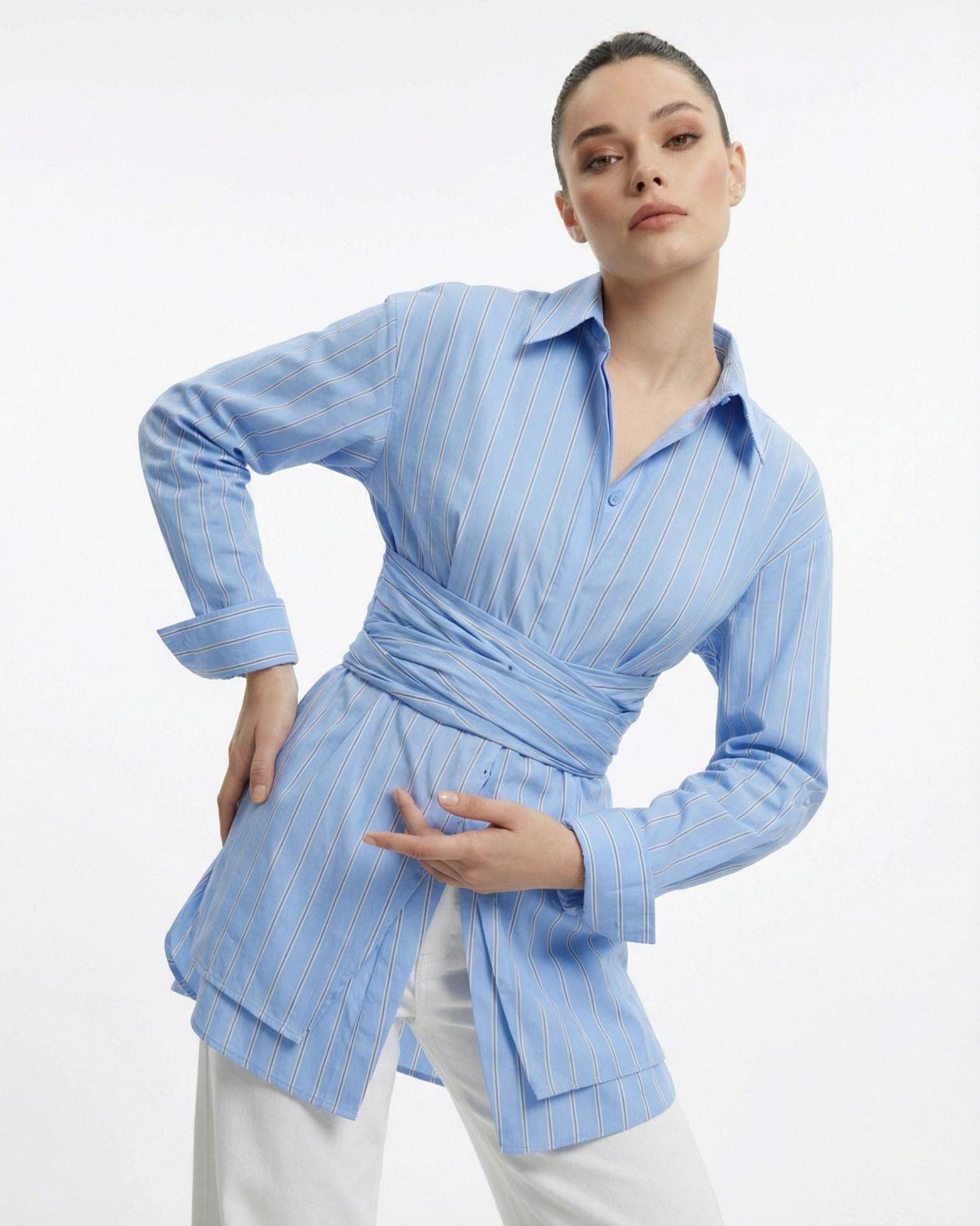 Kruvaze Bağlamalı Çizgili Bluz 3507