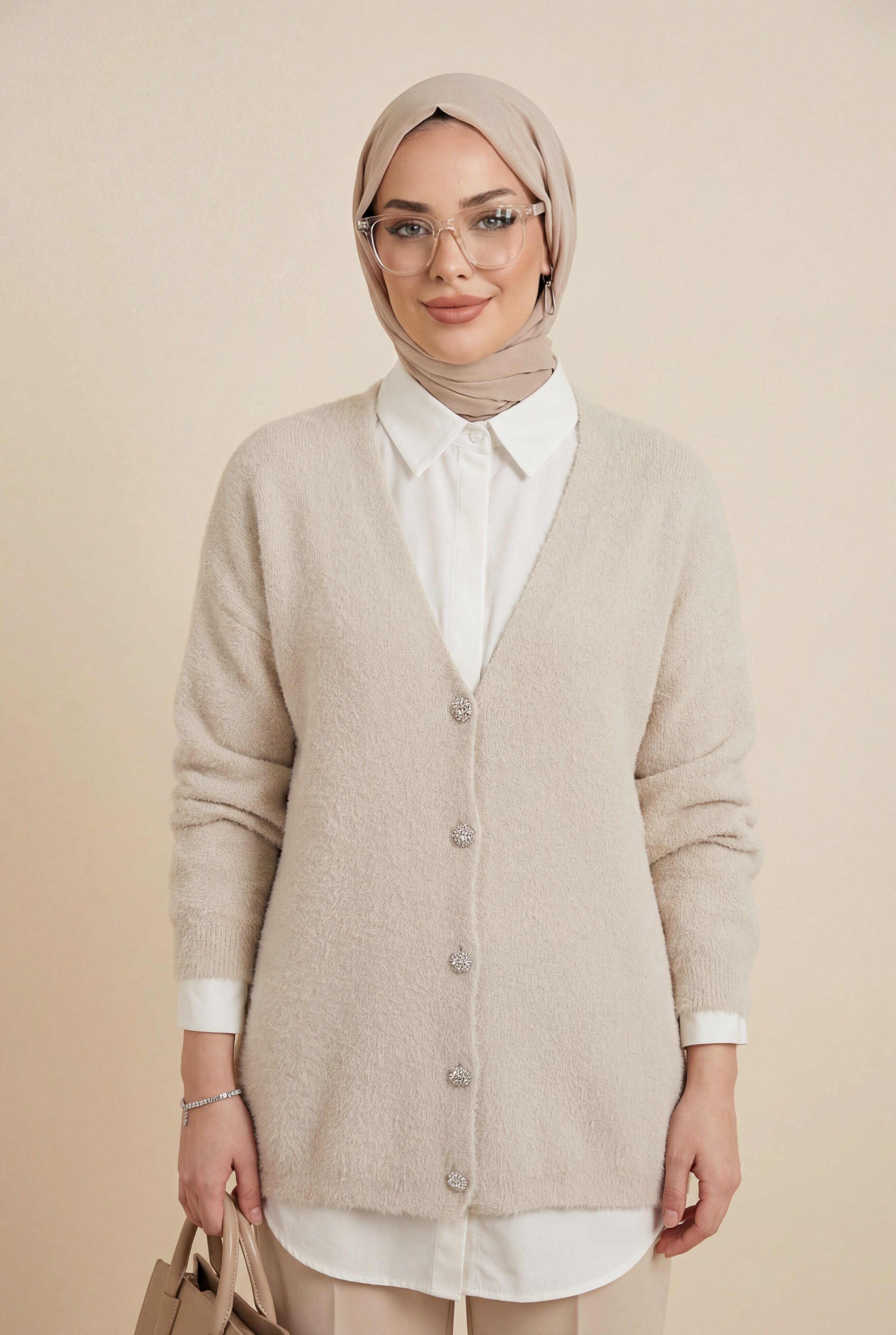 Not: Ürün içeriği hırkadan oluşmaktadır. (Bluz, pantolon, ayakkabı, çanta ve takılar dekor amaçlı kullanılmaktadır.)