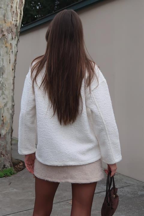 Geniş Yaka Peluş Kürk Mont Kuşaklı 10300