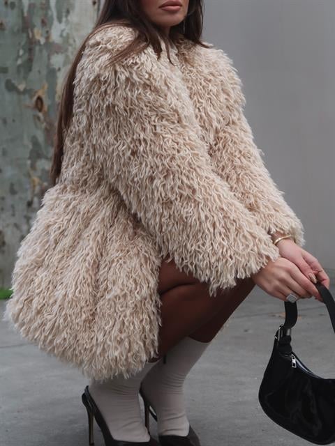 Geniş Yaka Peluş Kürk Mont Kuşaklı 10300