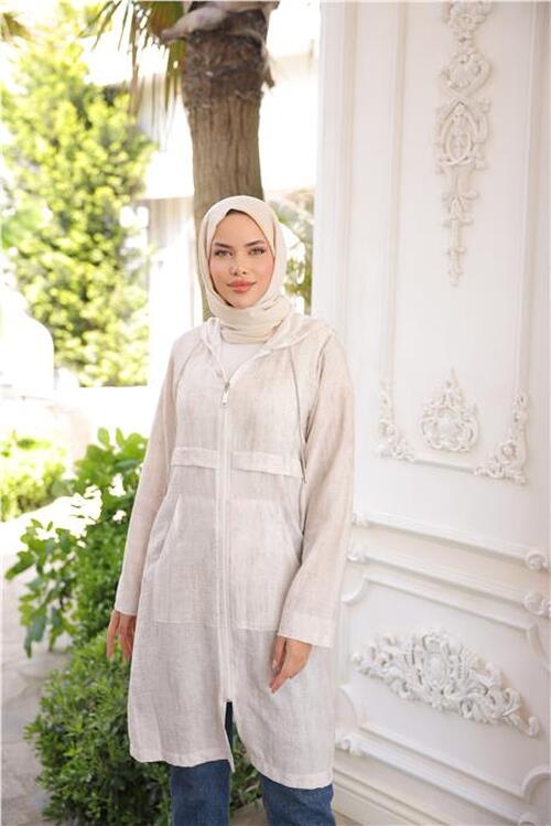 STOK ADI : - Fermuarlı Kapşonlu Cepli Uzun Kollu Kap