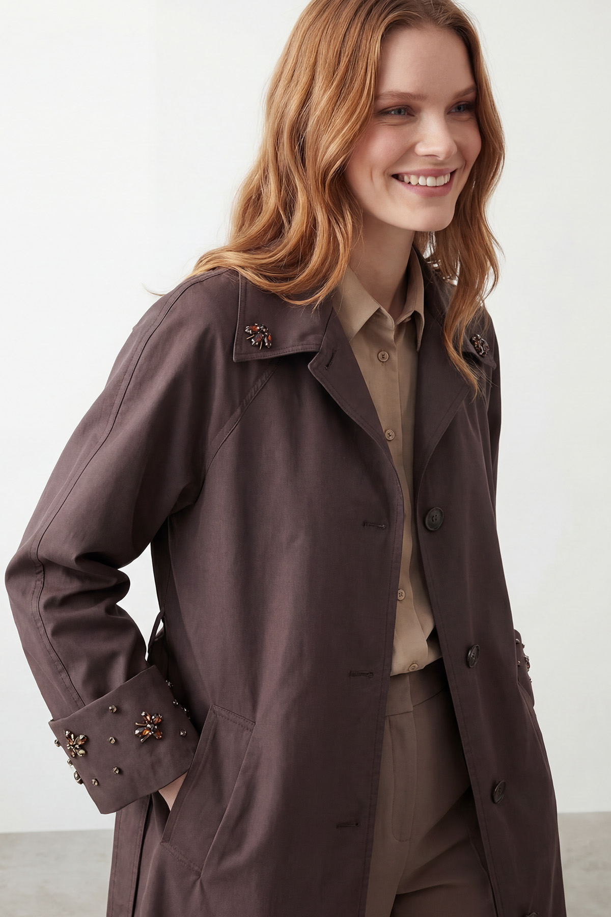 Klasik trençkot şıklığını göz alıcı detaylarla buluşturan 26S-15265TRC kodlu model, stilinize zarif bir imza atıyor. Pamuk karışımlı dokuma kumaşı sayesinde mevsim geçişlerinde konfor sunarken, yaka ve manşetlerindeki özel işleme detayları ile sıradan dış giyim parçalarından ayrılıyor. Ayarlanabilir kuşağı ve modern kesimiyle hem spor hem de şık kombinlerinizin vazgeçilmezi olacak.
