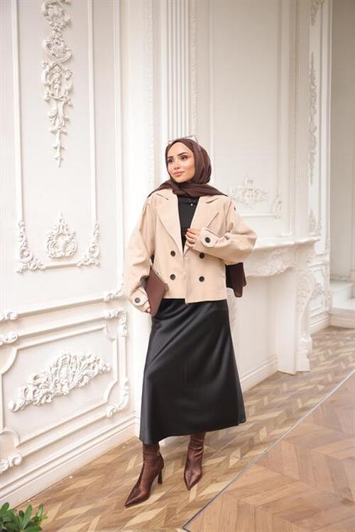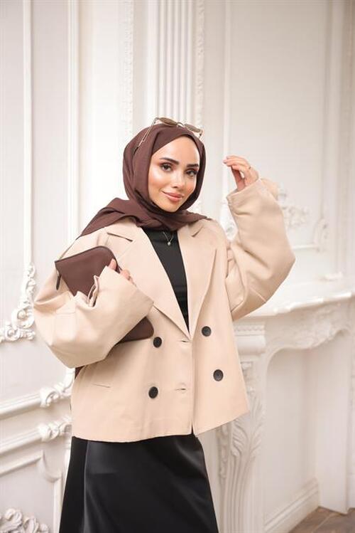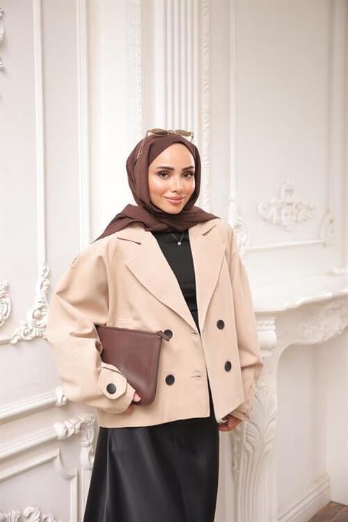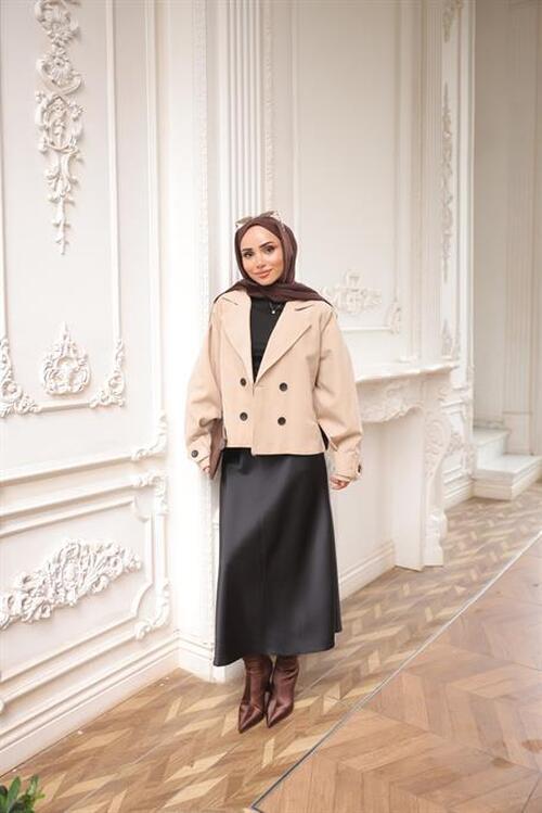 STOK ADI : - Kruvaze Ceket Yaka Cepli Kısa Trençkot