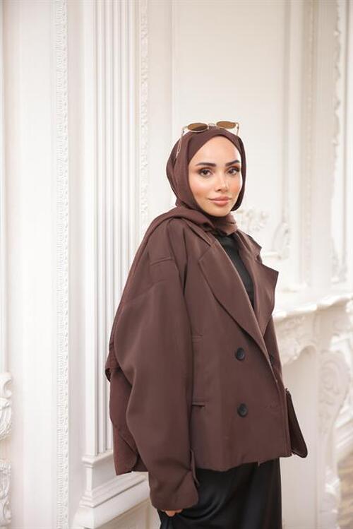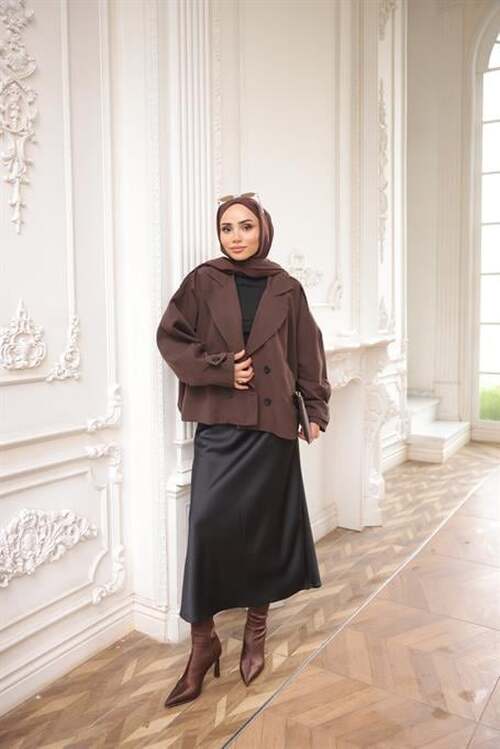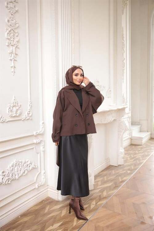 STOK ADI : - Kruvaze Ceket Yaka Cepli Kısa Trençkot