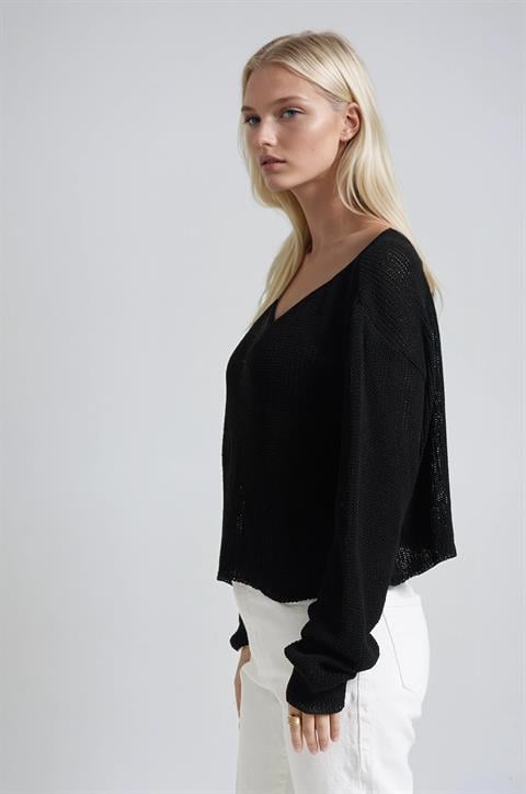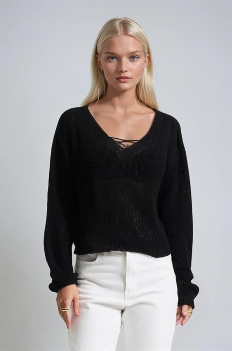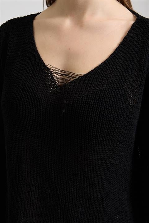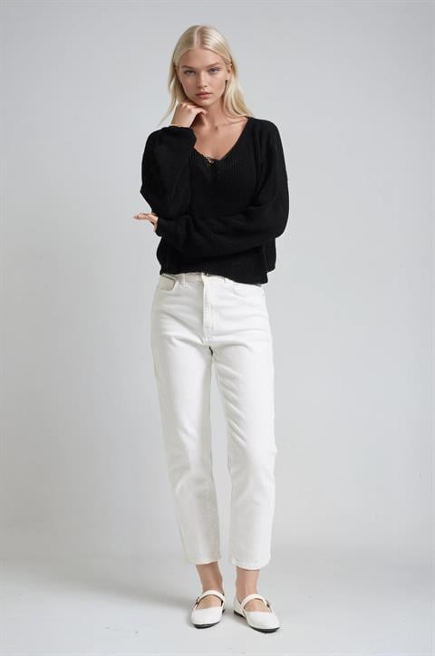 V Yaka Ajurlu Büzgülü Triko Kazak 1425