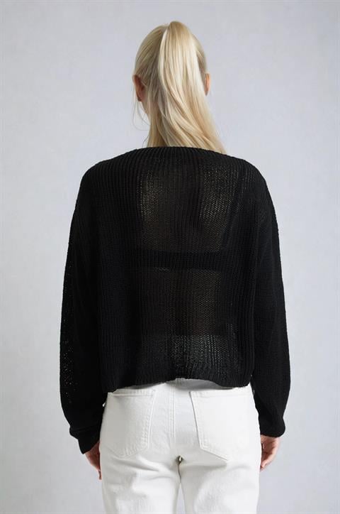 Oversize Rahat Kalıp Yazılı Triko Kazak 1418