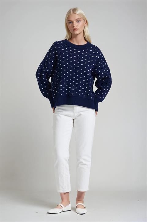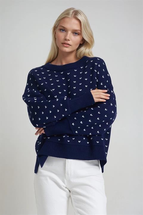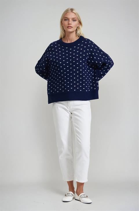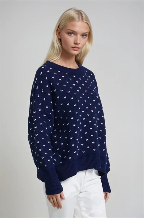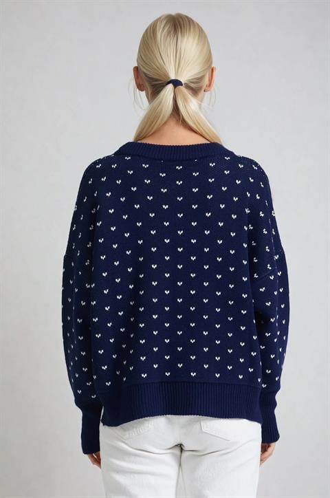Bisiklet Yaka Desenli Triko Kazak 1417