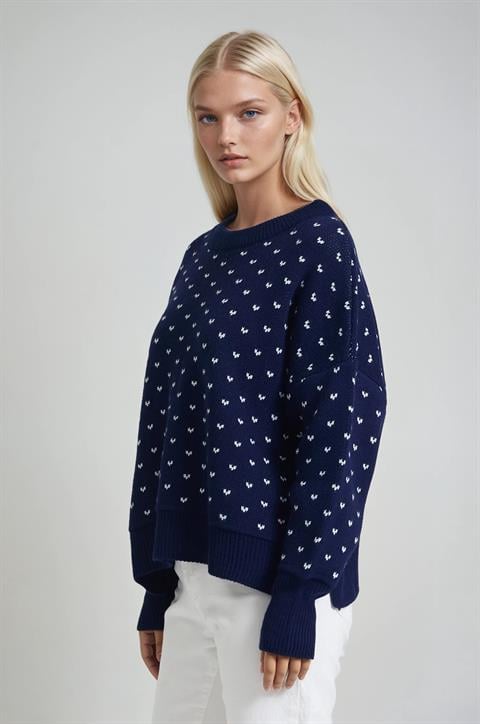 Oversize Rahat Kalıp Yazılı Triko Kazak 1418
