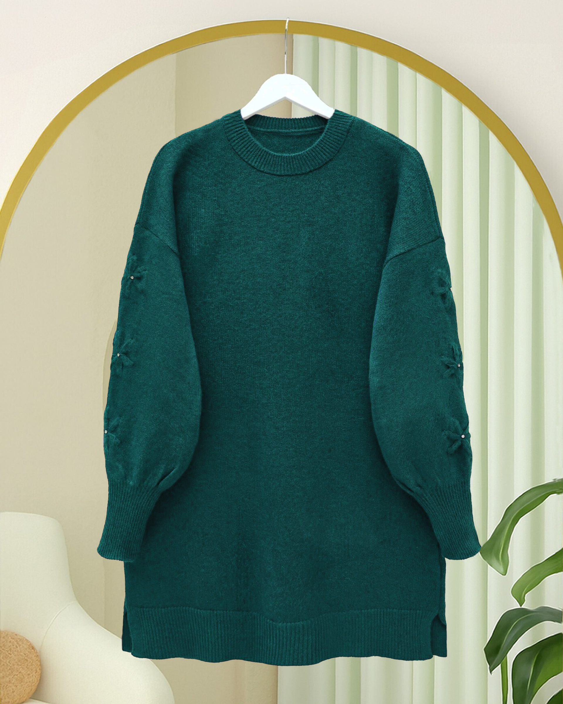 Kolu Çiçek Detaylı Yuvarlak Yaka Yumoş Triko Kazak, yumuşacık dokusu ve zarif detaylarıyla günlük stilinize hem rahatlık hem de şıklık katan özel bir parçadır. Yumoş triko kumaşı sayesinde gün boyu konfor sunarken, kol kısmındaki çiçek işlemeleri kazakta feminen ve modern bir görünüm oluşturur. Yuvarlak yaka kesimi, her vücut tipine uyum sağlayarak estetik bir duruş sergiler.