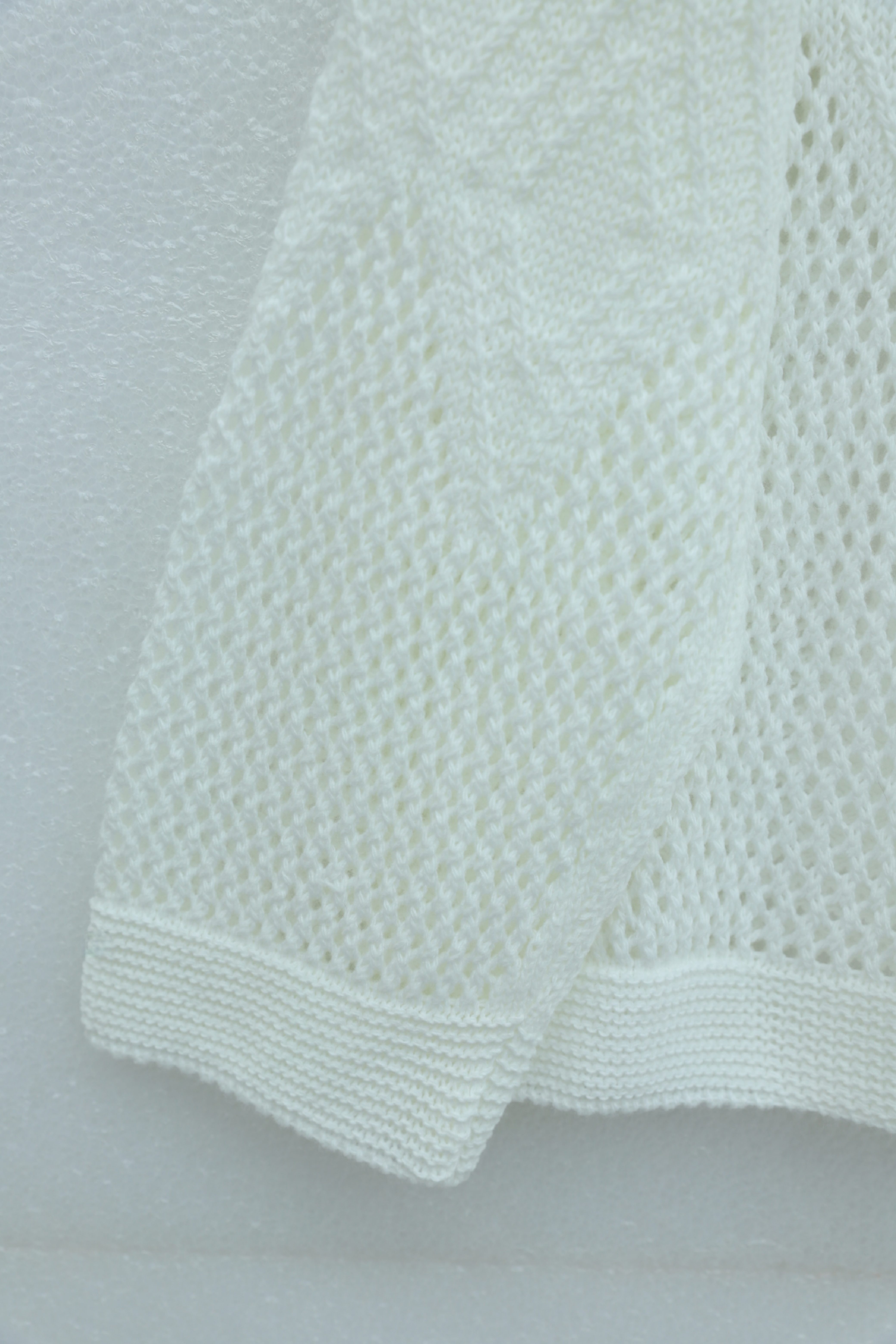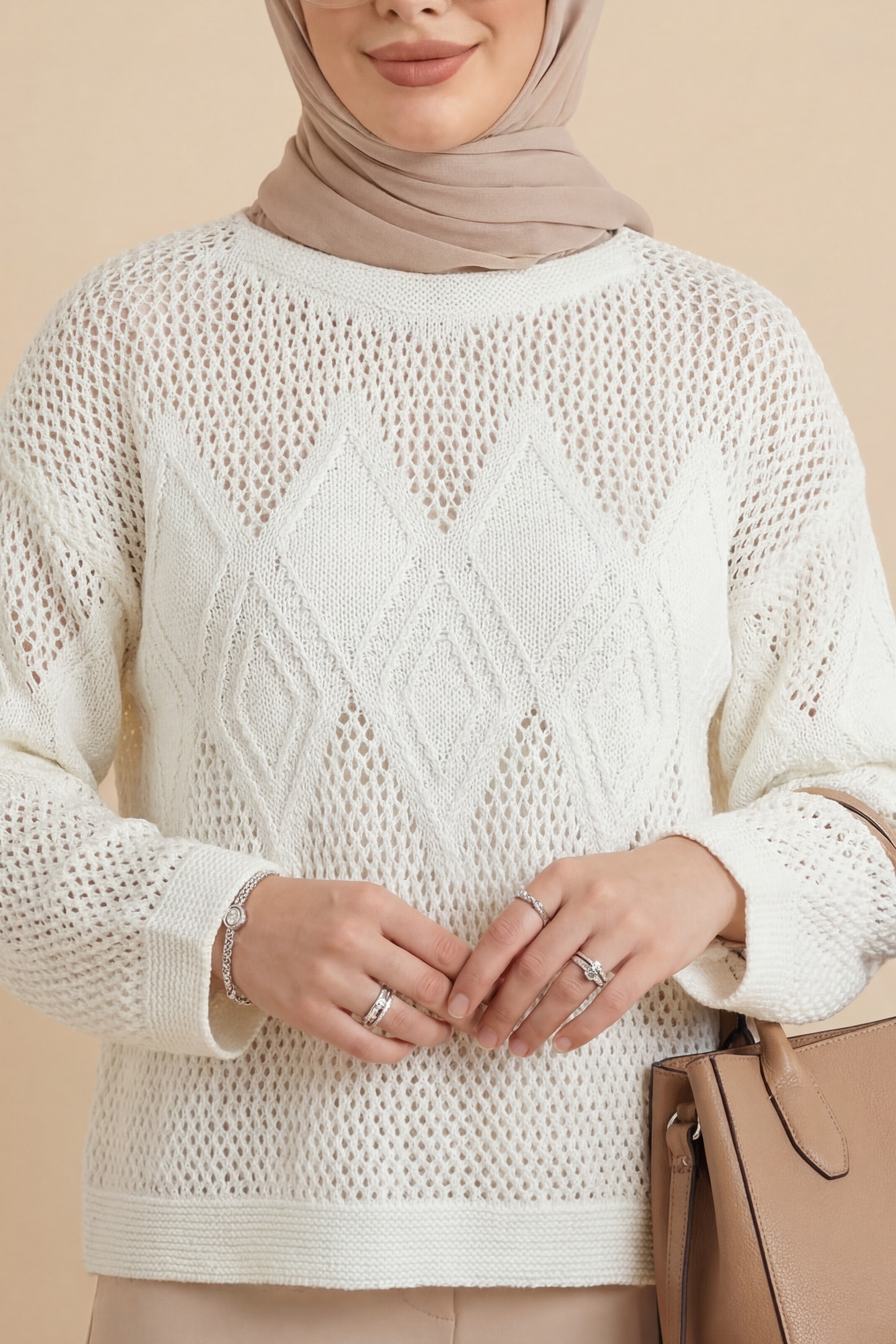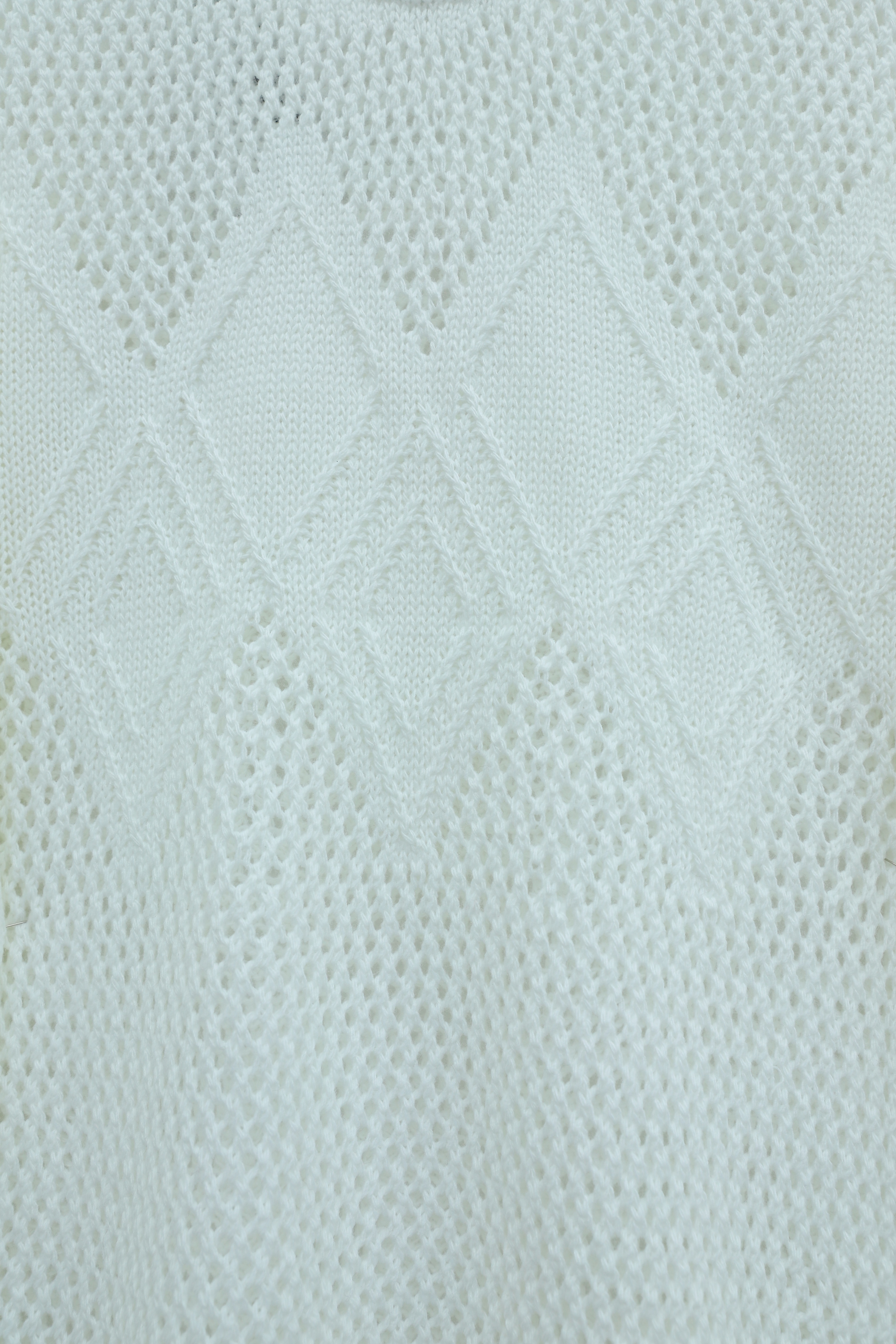 Podyumplus Önü Ve Kolları Desenli Ajurlu Triko Kazak -Beyaz