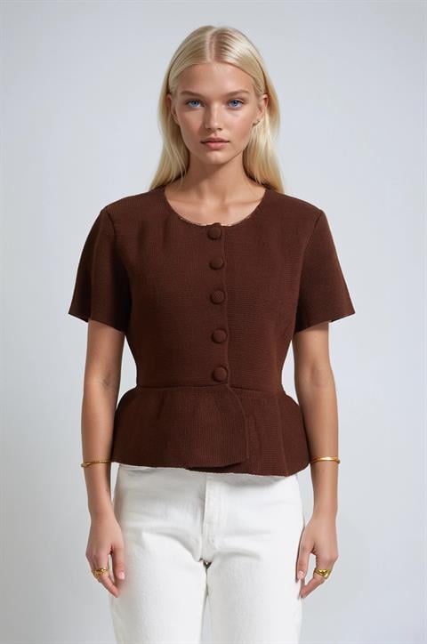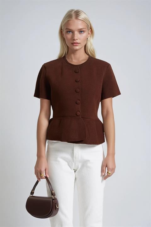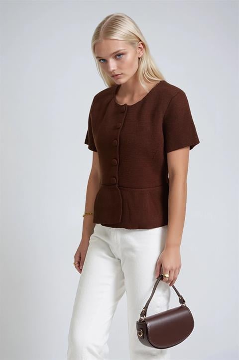 Yarasa Kol Ajurlu Triko Kazak -Pudra