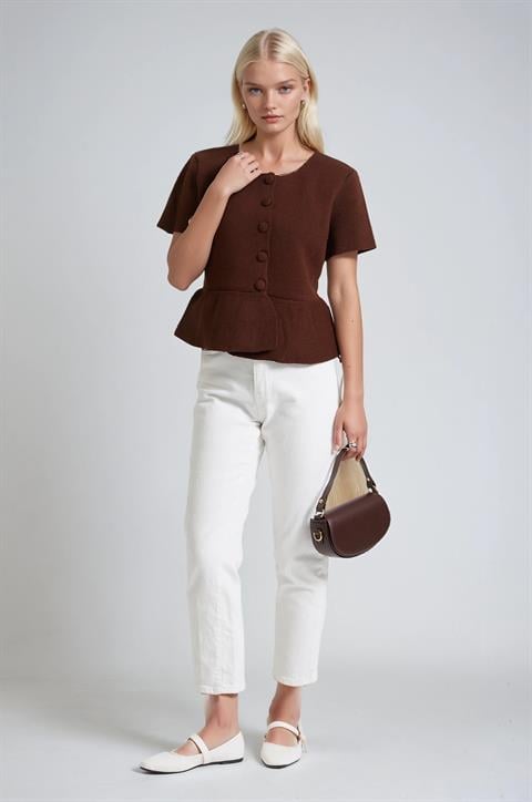 V Yaka Ajurlu Büzgülü Triko Kazak 1425