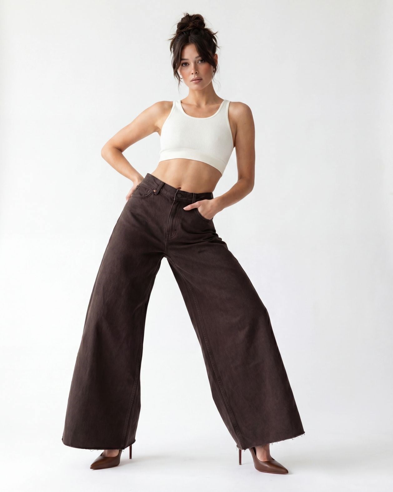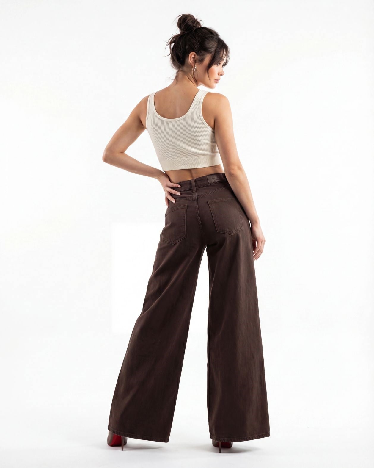 Lastikli Palazzo Pantolon HS708 Kahverengi