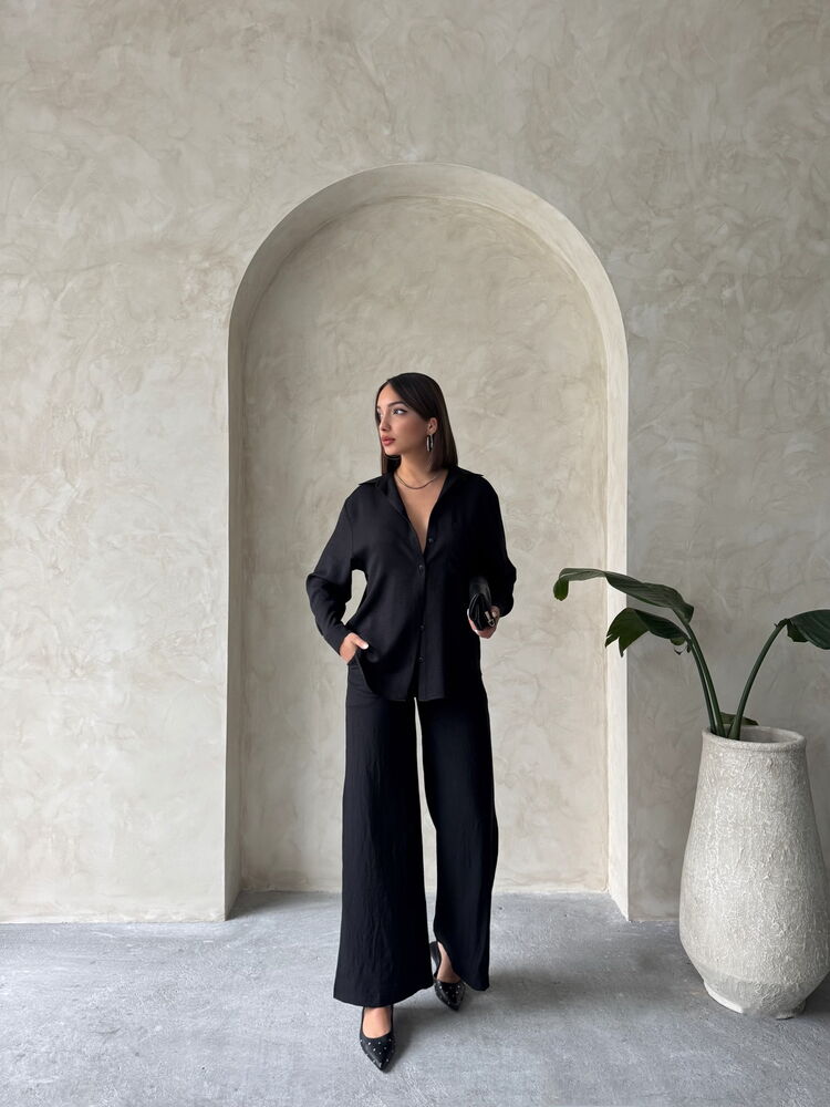 Topshow Siyah Keten Toptan Pantolon