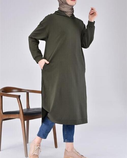 Atlas Kapşonlu Uzun Sade Basic Sweatshirt