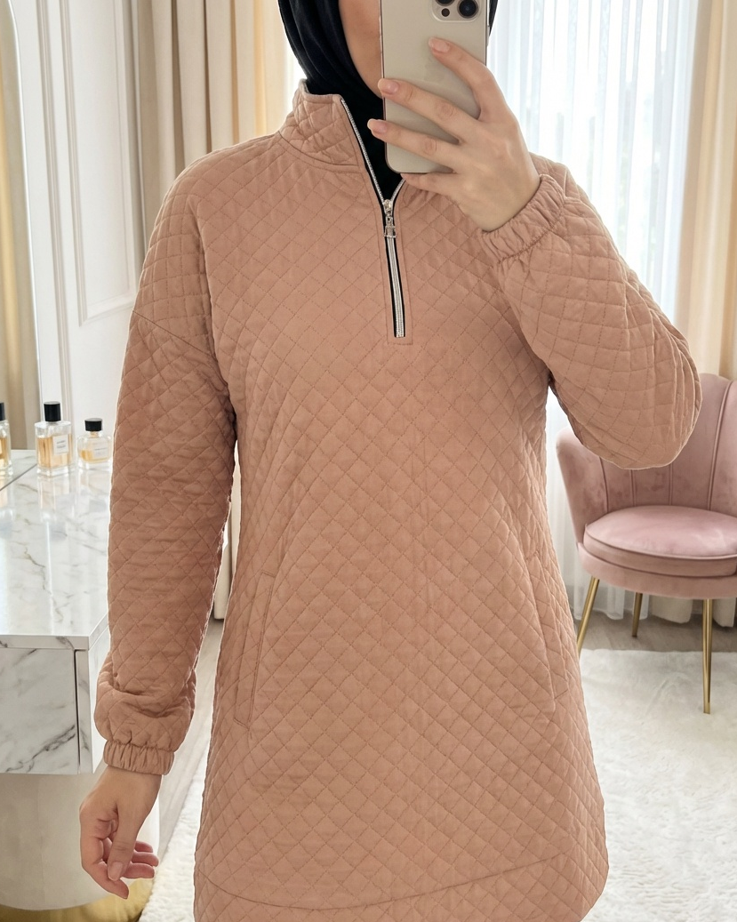 STOK ADI : - Kısa Fermuarlı Yaka Kapitone Şık Spor Sweat