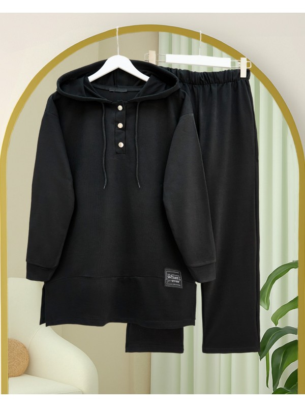 Süet İşlemeli Toptan Siyah Triko İkili Takım STD