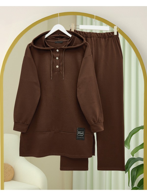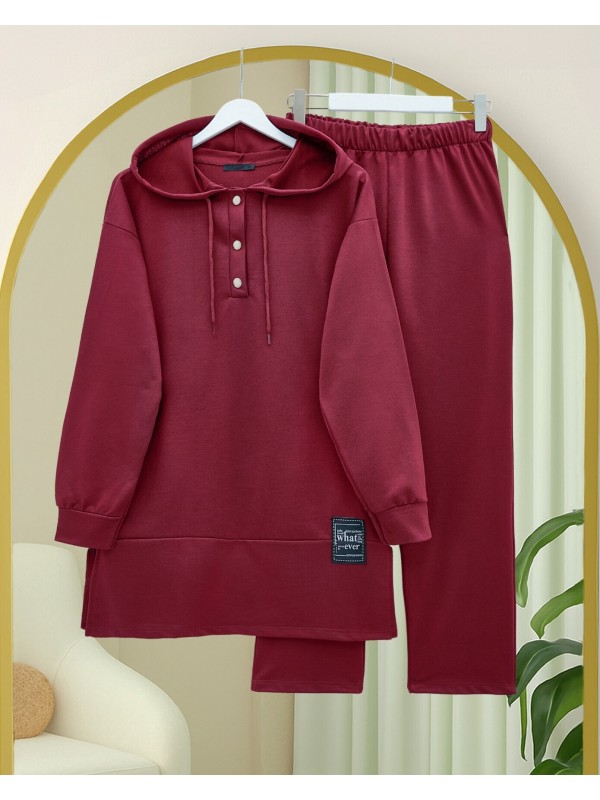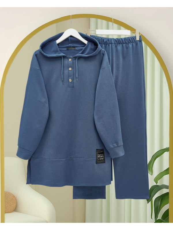 Kadın Uzun Kollu Kapşonlu Bağcıklı Desenli Iki Iplik Bluz Ve Pantolon Ikili Takım , 29276