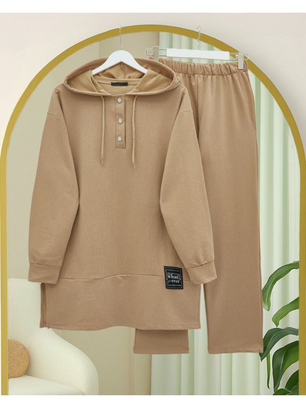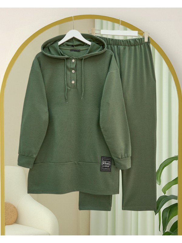 Kadın Uzun Kollu Kapşonlu Kamuflaj Desenli Bluz Ve Pantolon Tayt Ikili Takım , 29094