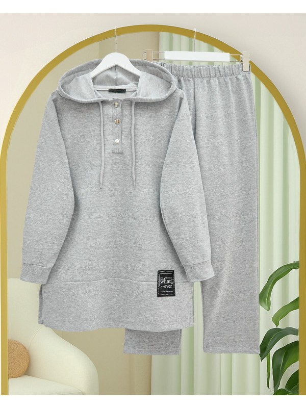 Çıtçıtlı Arma Detaylı İkili Penye Takım -Gümüş
