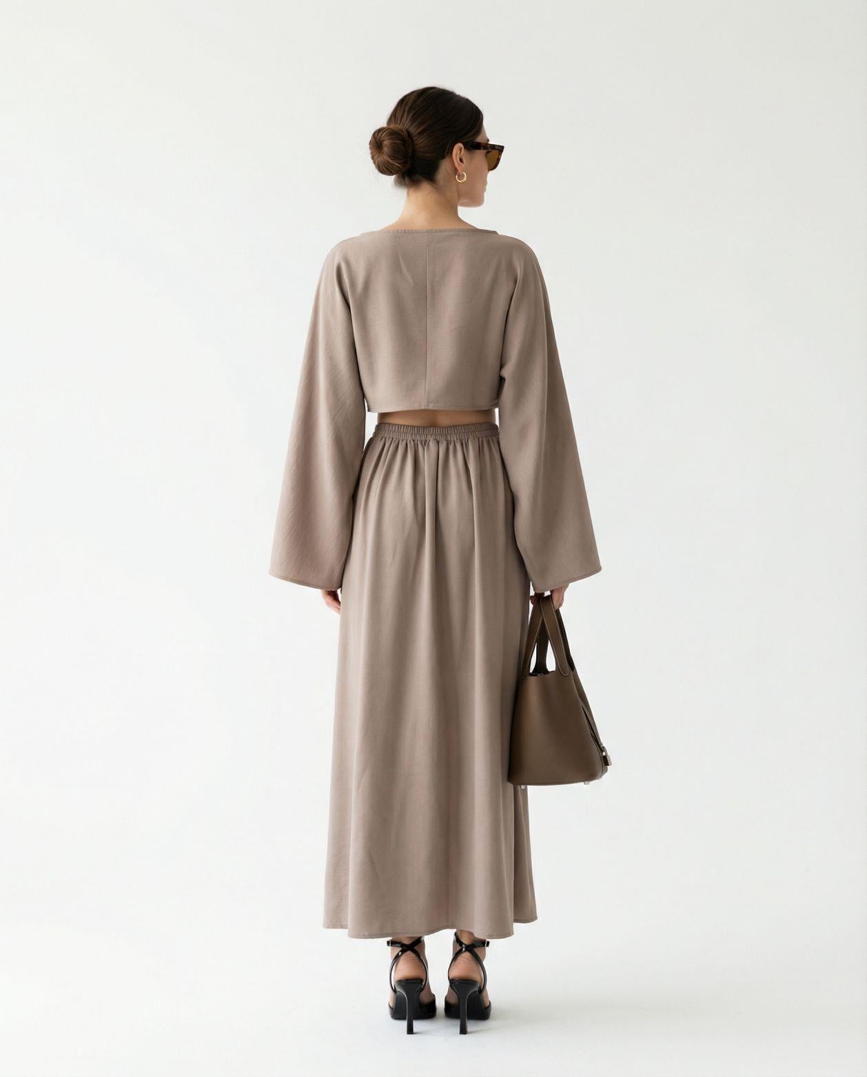 Yuvarlak Yaka Yarasa Kol Beli Lastikli Etekli Oyşo Takım -Haki