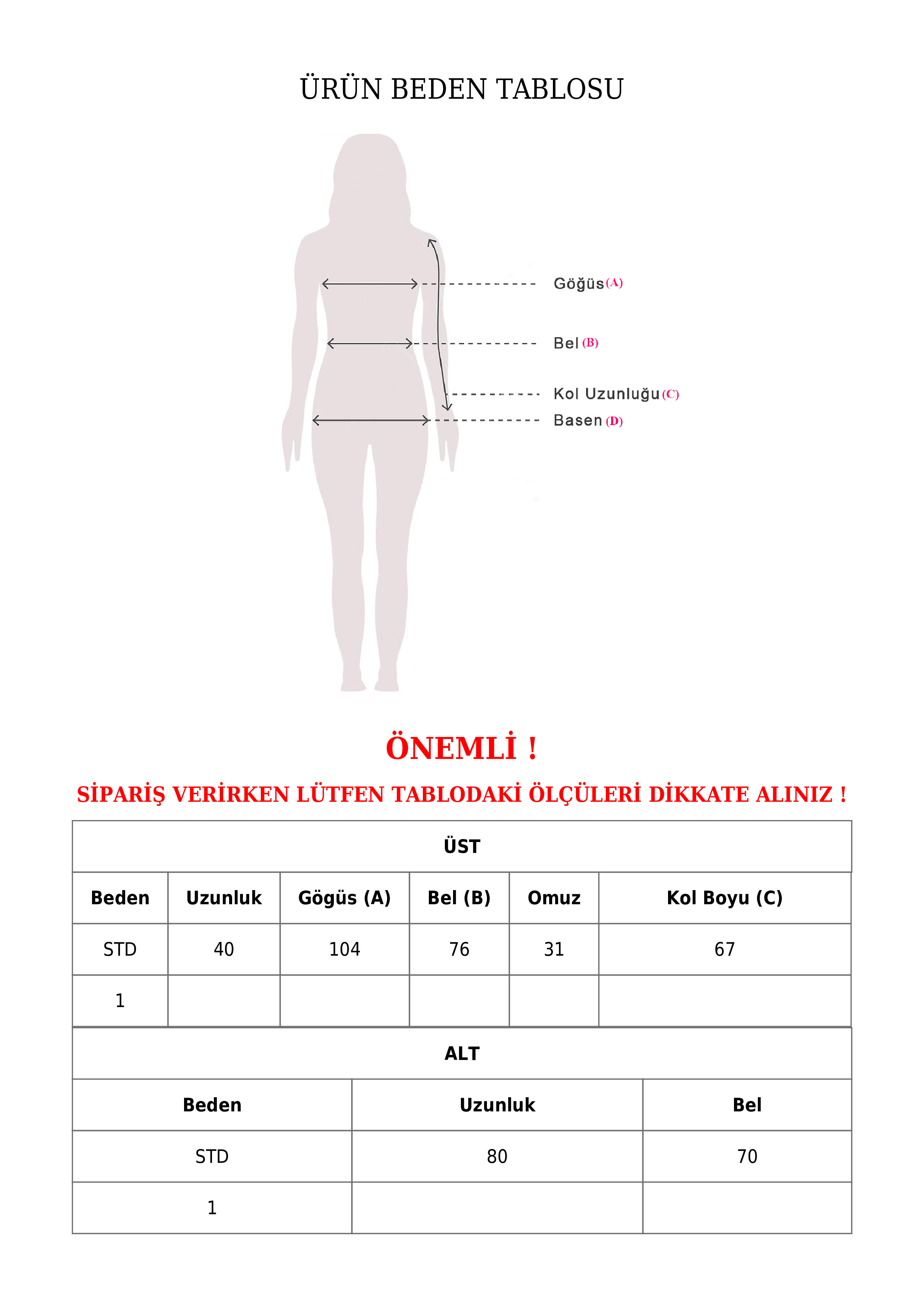 | Beden | Uzunluk | Göğüs | Bel | Omuz | Kol Boyu | |
