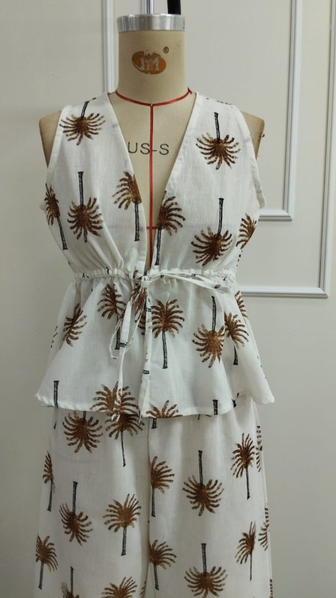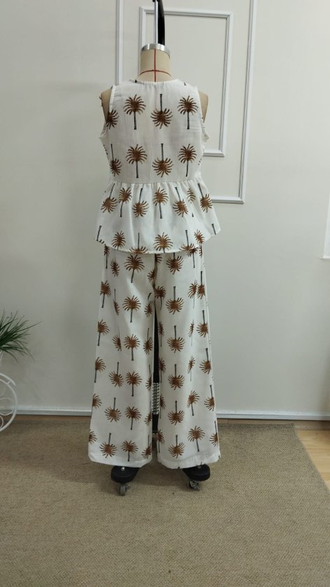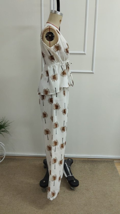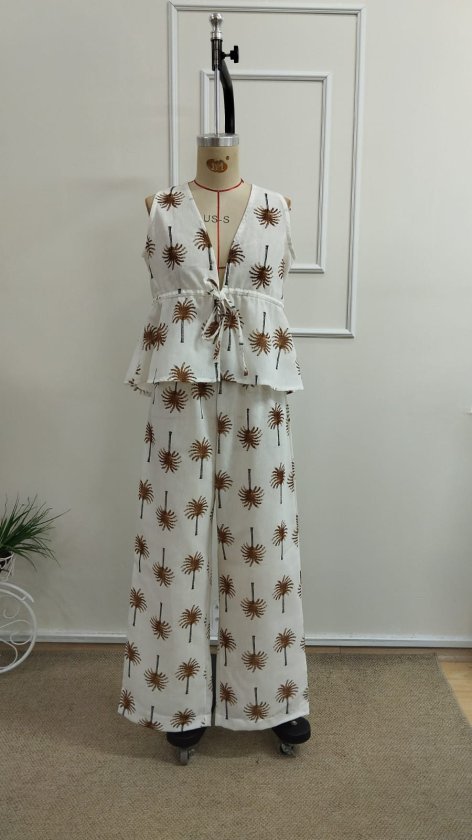 Kadın Askılı V Yakalı Belden Bağlamalı Desenli Bluz Ve Pantolon Ikili Takım, 33228