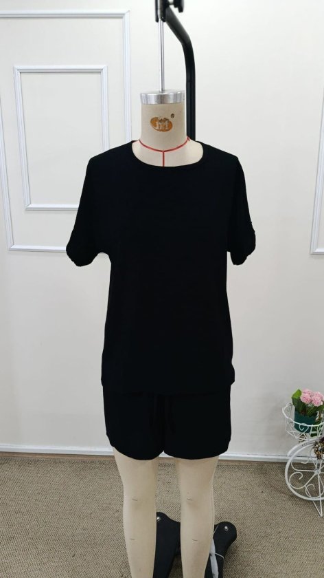 Kadın Kısa Kollu Bisiklet Yaka Bürümcük Bluz Ve Kısa Short Ikili Takım