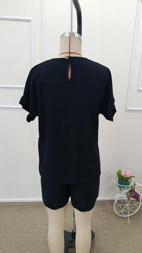 Kadın Kısa Kollu Bisiklet Yaka Bürümcük Bluz Ve Kısa Short Ikili Takım, 32466