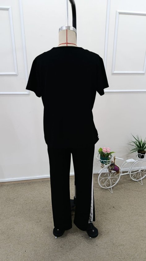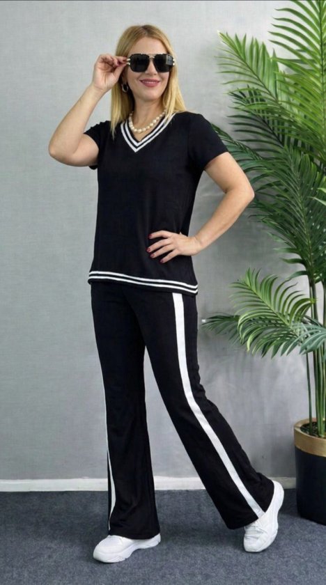 Kadın Kısa Kollu V Yakalı Viskon Iki Iplik Bluz Ve Pantolon Ikili Takım