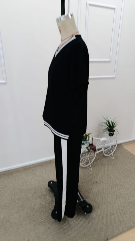 Kadın Kısa Kollu Bisiklet Yaka Desenli Dalgıç Bluz Ve Tayt Ikili Takım , 32432