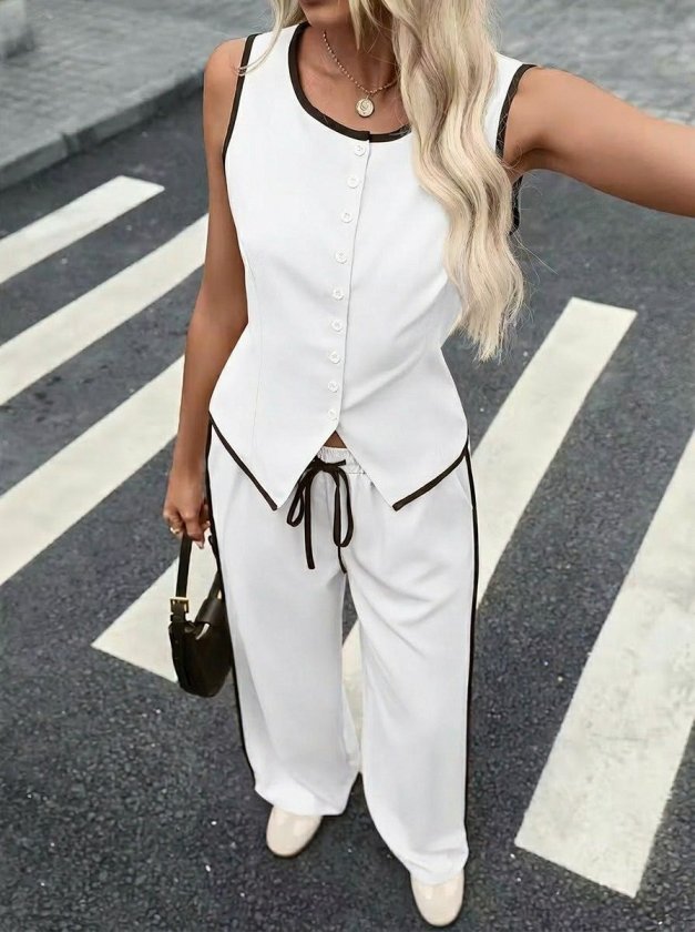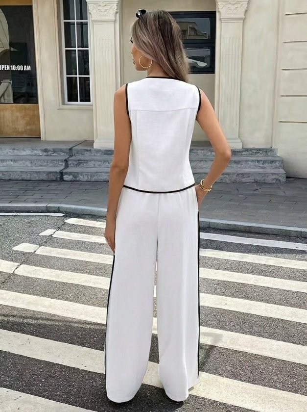 Kadın Kolsuz önü Düğmeli Yelek Ve Pantolon Ikili Takım