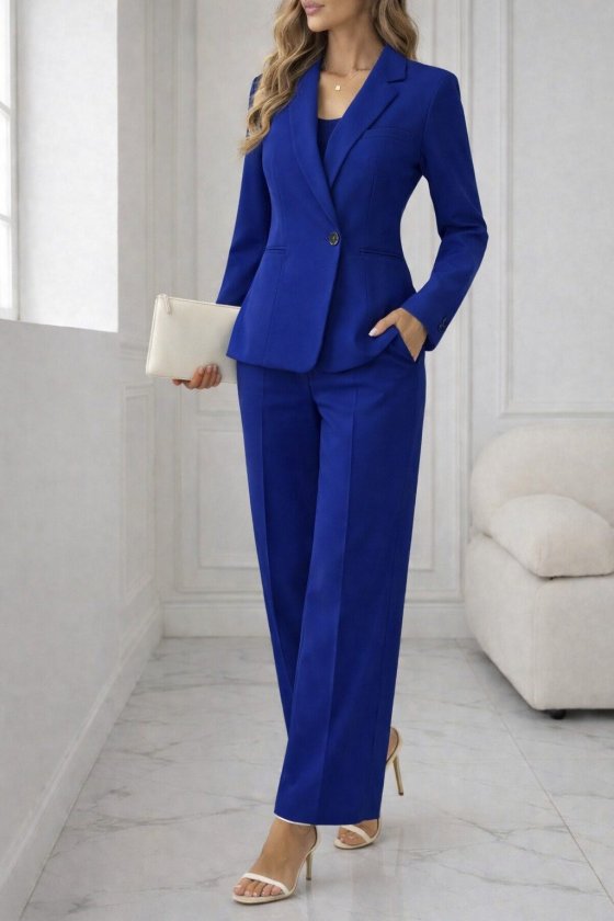Kadın Uzun Kollu Yakalı Belden Tek Düğme Detaylı Atlas Ceket Ve Pantolon Ikili Takım