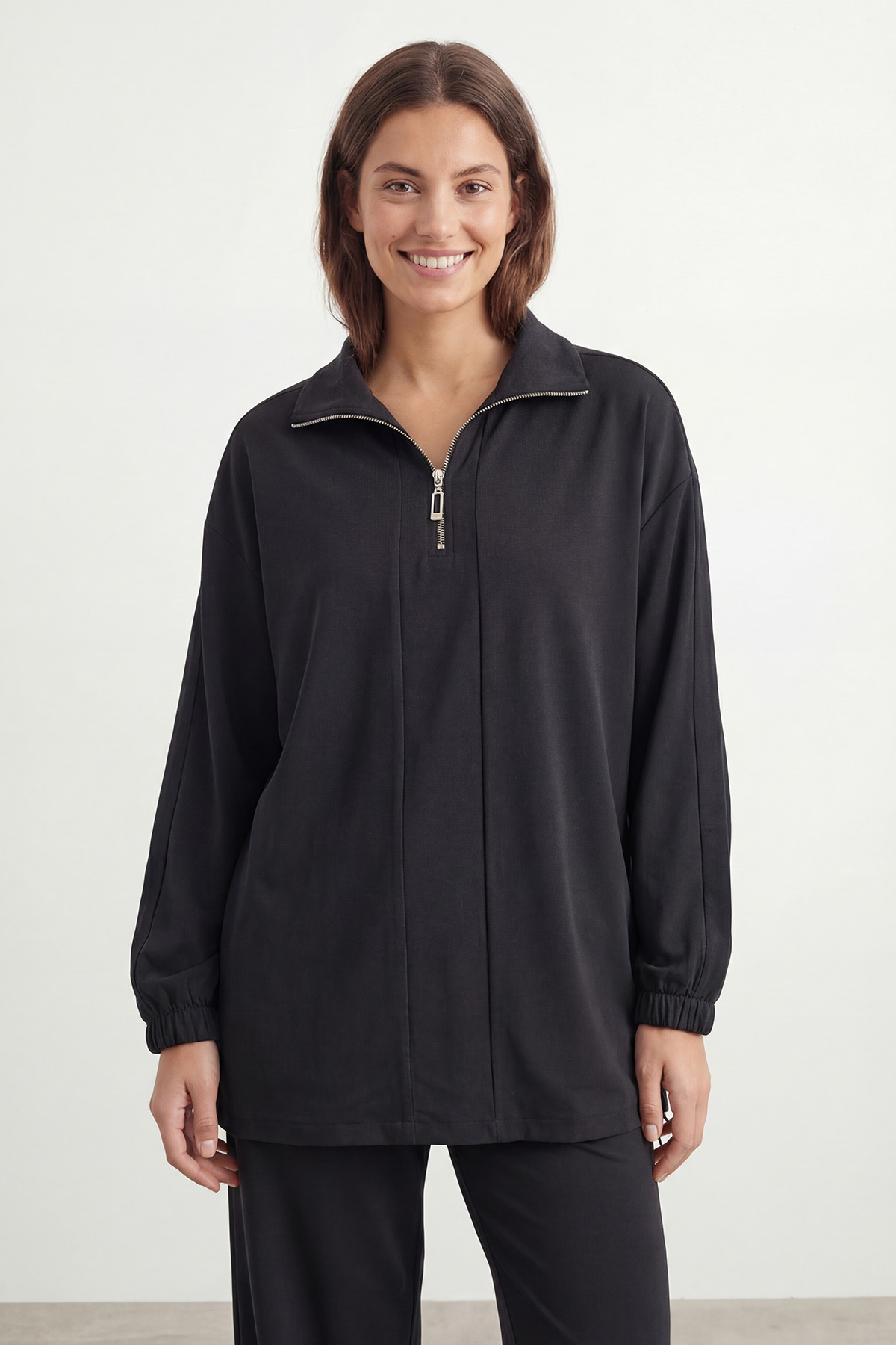 Kadın Yarım Fermuarlı Kontrast Detaylı Rahat Takım – 14485TKS, konfor ve modern görünümü bir araya getiren günlük stilin güçlü parçalarından biridir. Yumuşak dokulu ve esnek yapıya sahip kumaşı sayesinde gün boyu rahat hareket imkanı sunar.