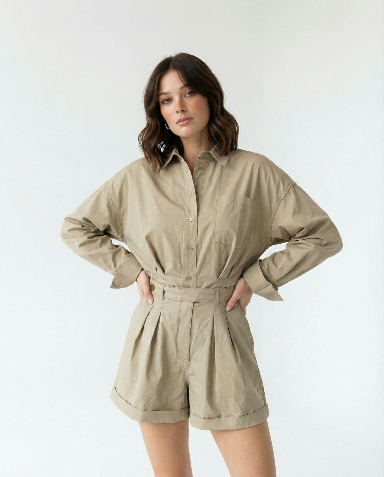 Kruvaze Detaylı V Yaka Tulum 1378