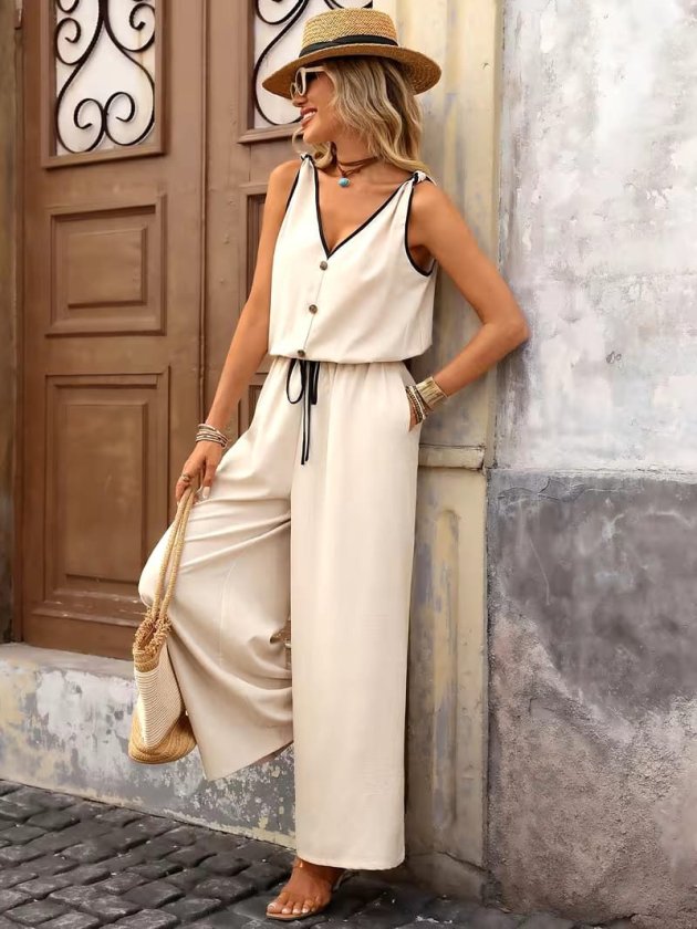 Kadın Askıdan Bağlamalı V Yakalı Belden Süs Bağcıklı Tulum
