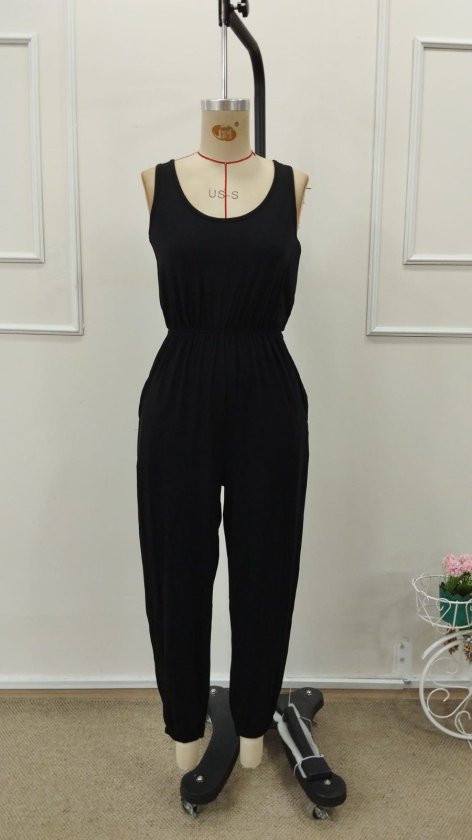 Kadın Askılı Yuvarlak Yakalı Cepli Viskon Tulum