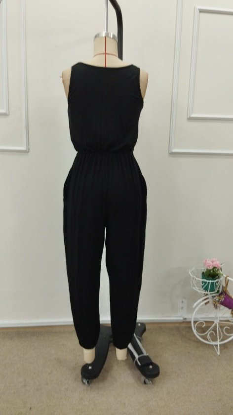 Kadın Askıdan Bağlamalı V Yakalı Belden Süs Bağcıklı Tulum , 33113
