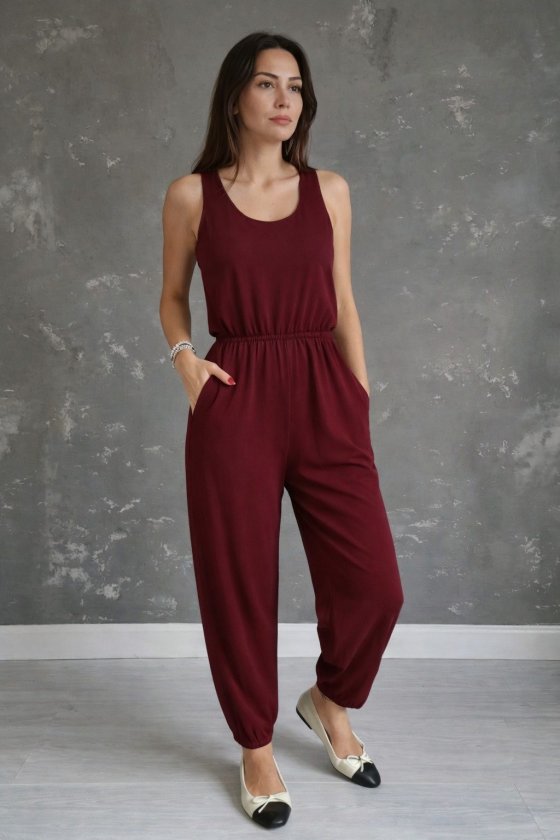 Kadın Askılı Yuvarlak Yakalı Cep Detaylı Viskon Tulum, 31891