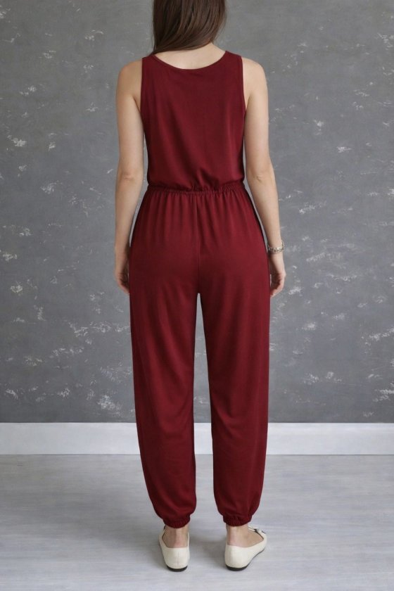 Kadın Askıdan Bağlamalı V Yakalı Belden Süs Bağcıklı Tulum , 33113