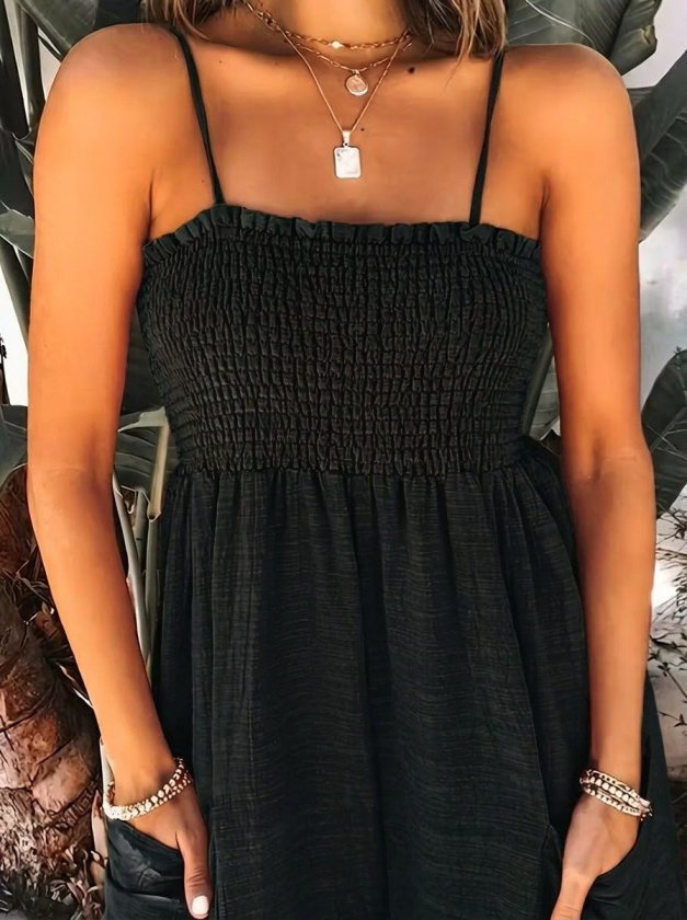 Kadın Ip Askılı Göğsü Lastik Detaylı Cepli Uzun Tulum, 32653