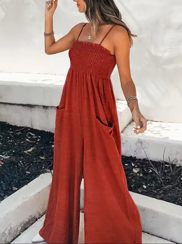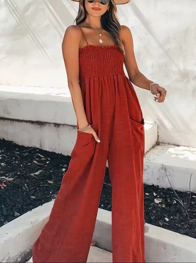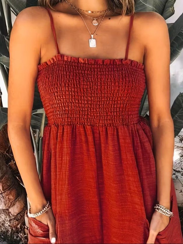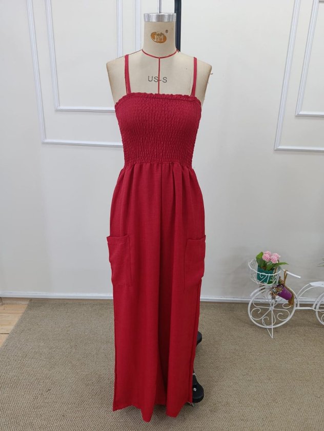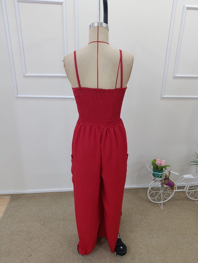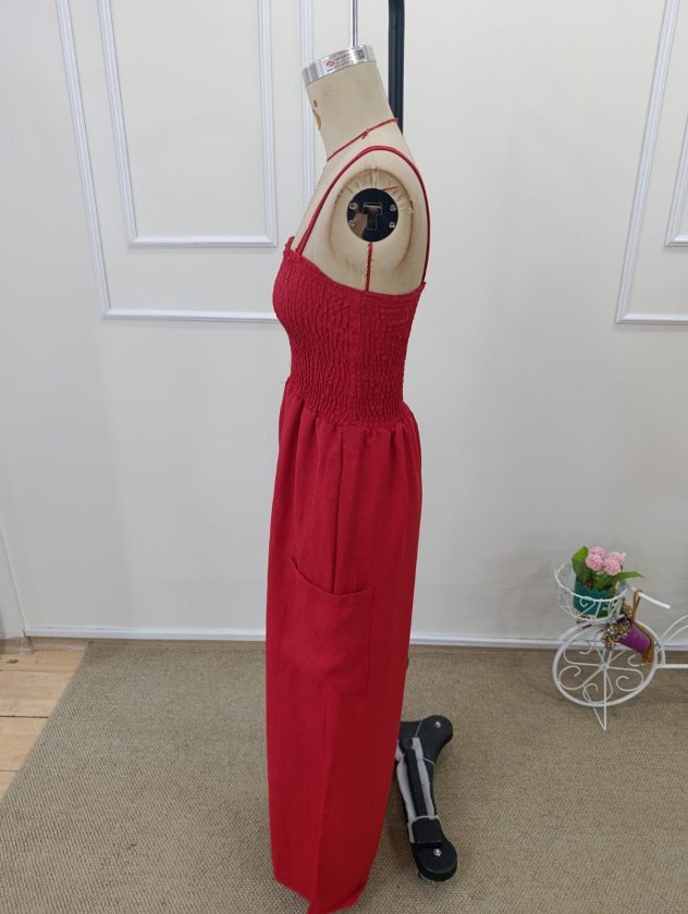 Kadın Ip Askılı Göğsü Lastik Detaylı Cepli Uzun Tulum, 32655